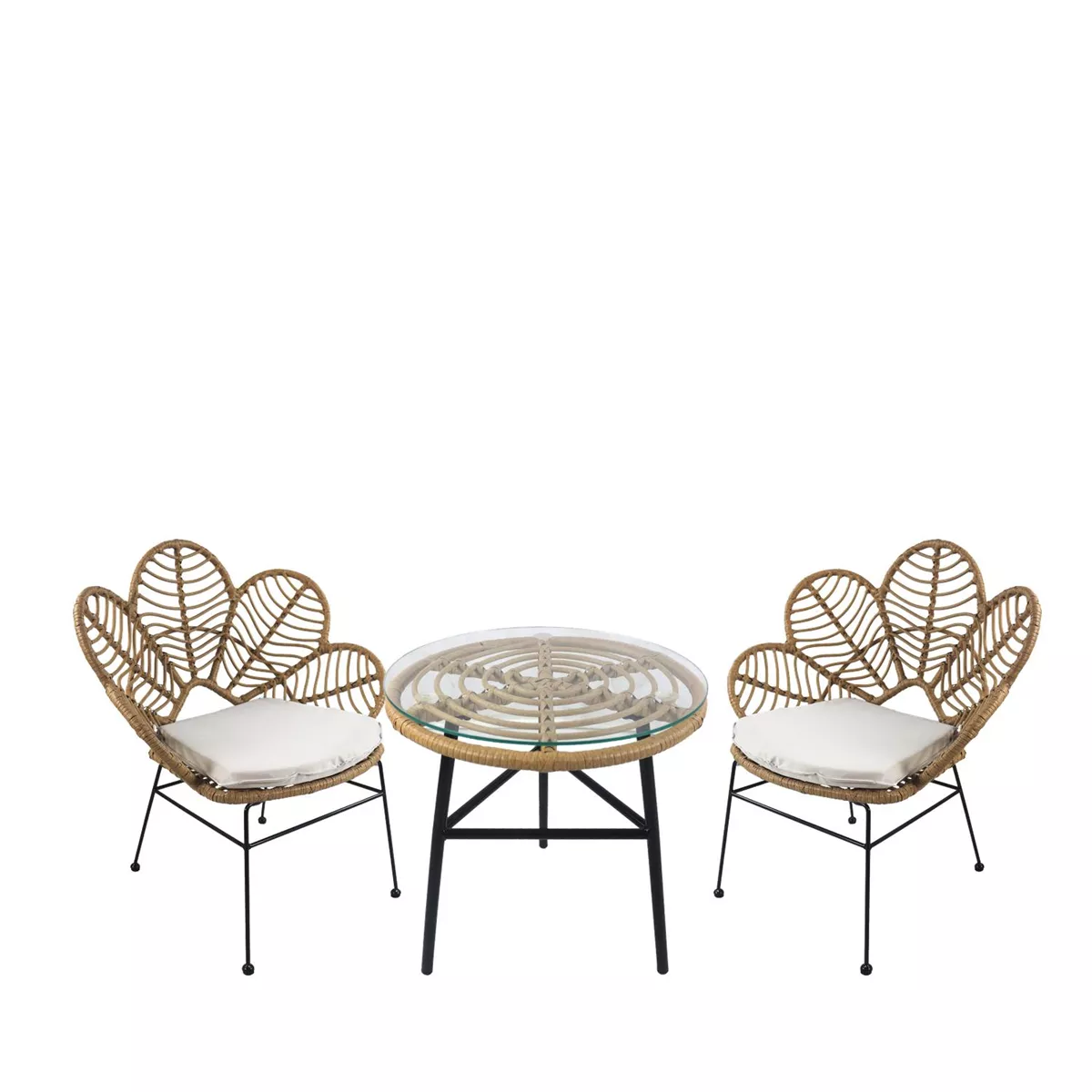 Σετ Τραπεζαρία Κήπου ArteLibre ARELLIUS Φυσικό/Μαύρο Μέταλλο/Rattan/Γυαλί Με 2 Καρέκλες 14990357