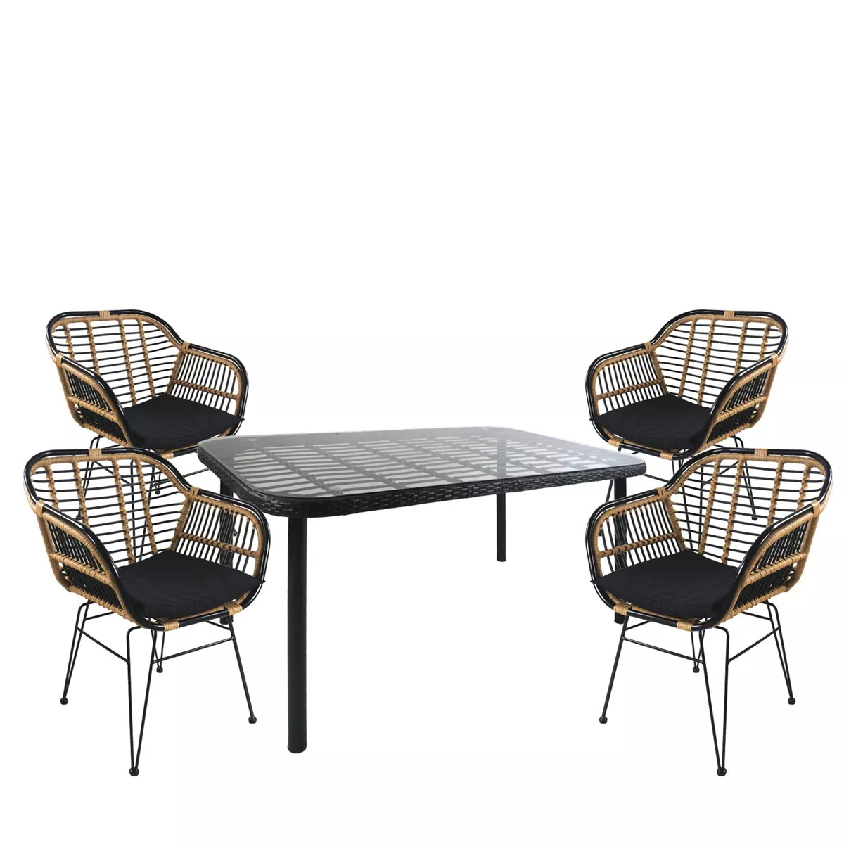 Σετ Τραπεζαρία Κήπου ArteLibre AMPLAS Μαύρο Μέταλλο/Rattan/Γυαλί Με 4 Καρέκλες 14990365
