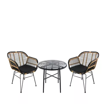 Σετ Τραπεζαρία Κήπου ArteLibre APPIUS Μαύρο Μέταλλο/Rattan/Γυαλί Με 2 Καρέκλες 14990370