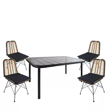 Σετ Τραπεζαρία Κήπου ArteLibre AMPLAS Μαύρο Μέταλλο/Rattan/Γυαλί Με 4 Καρέκλες 14990371