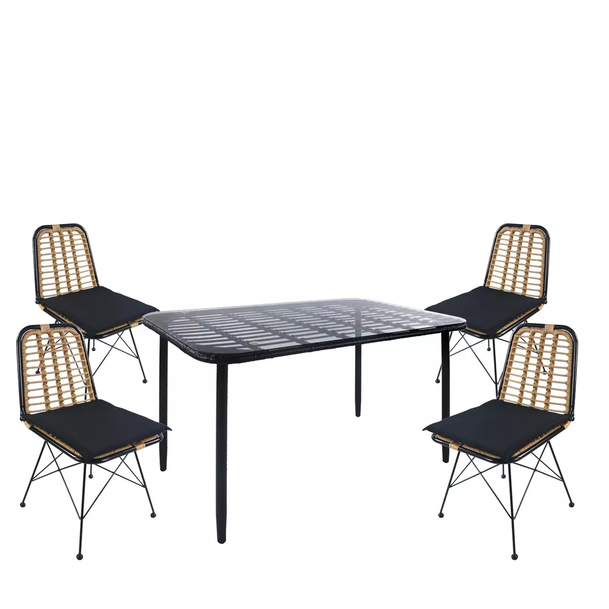 Σετ Τραπεζαρία Κήπου ArteLibre ANNIUS Μαύρο Μέταλλο/Rattan/Γυαλί Με 4 Καρέκλες 14990372