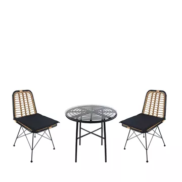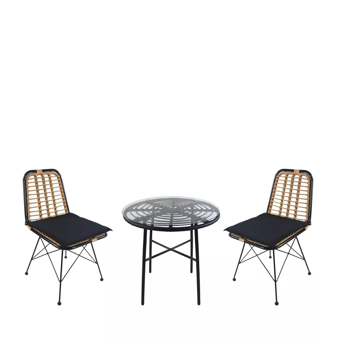 Σετ Τραπεζαρία Κήπου ArteLibre APPIUS Μαύρο Μέταλλο/Rattan/Γυαλί Με 2 Καρέκλες 14990376