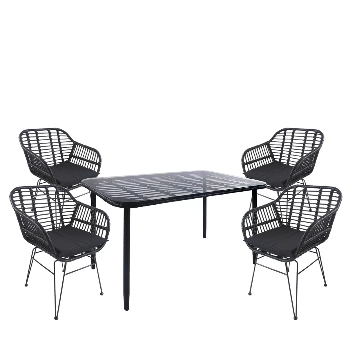 Σετ Τραπεζαρία Κήπου ArteLibre ANNIUS Μαύρο Μέταλλο/Rattan/Γυαλί Με 4 Καρέκλες 14990378