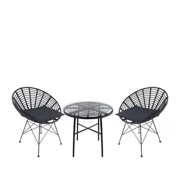 Σετ Τραπεζαρία Κήπου ArteLibre APPIUS Μαύρο Μέταλλο/Rattan/Γυαλί Με 2 Καρέκλες 14990388