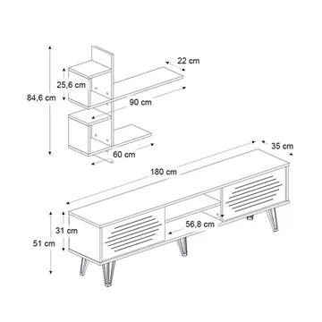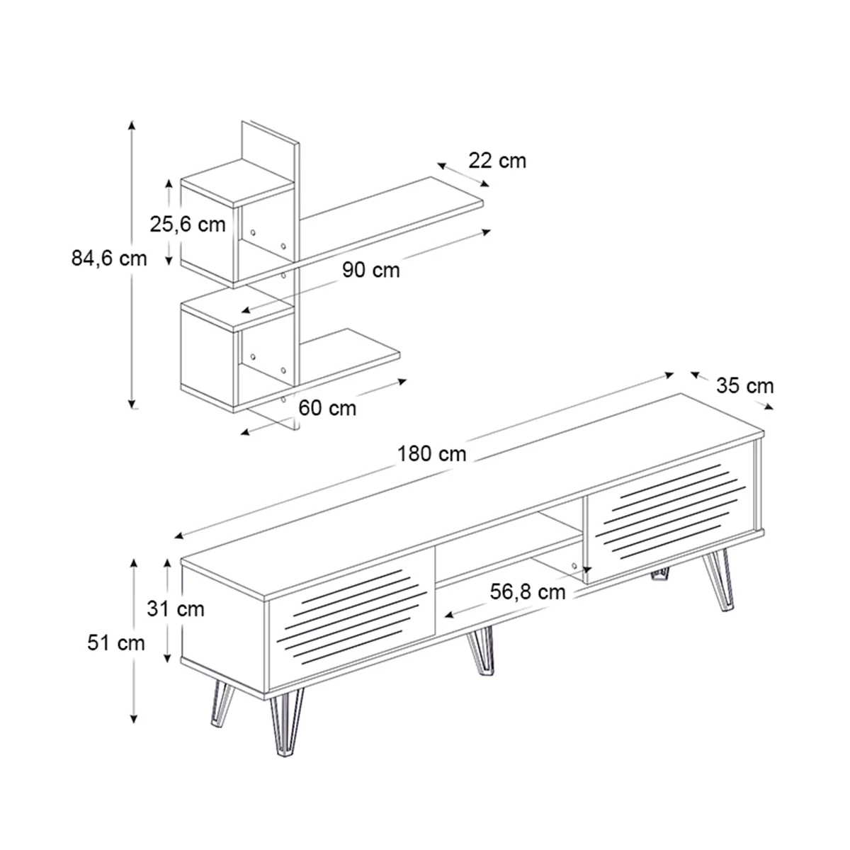 Σύνθεση τηλεόρασης Salerno Megapap χρώμα λευκό 180x35x51εκ.