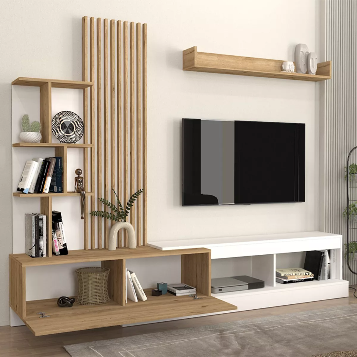 Σύνθεση τηλεόρασης Vermont Megapap χρώμα λευκό - sepet oak 240x40x192εκ.