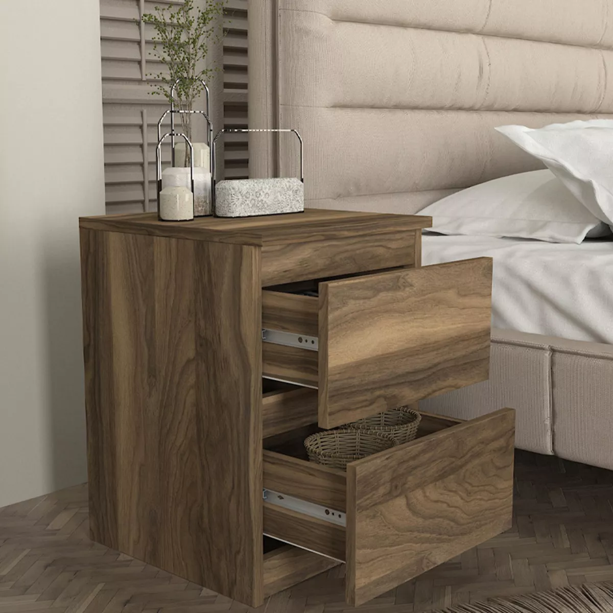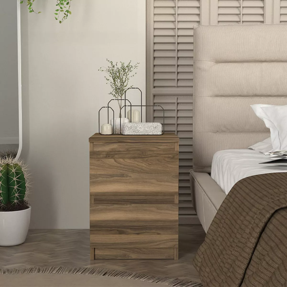 Κομοδίνο Breve Megapap χρώμα καρυδί 39,8x41,8x55εκ.