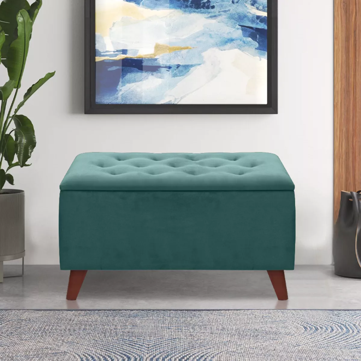 Σκαμπώ - Ταμπουρέ Lotus Megapap βελούδινο χρώμα κυπαρισσί 90x40x50εκ.