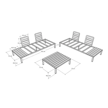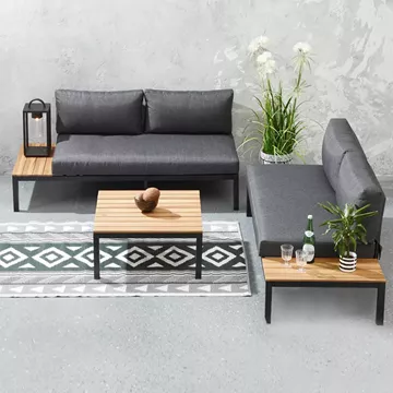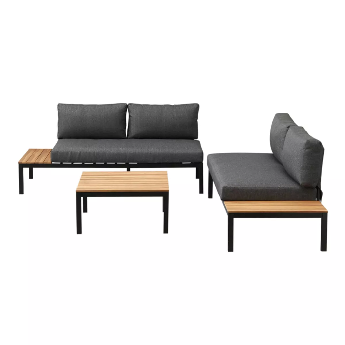 Σαλόνι κήπου Echo Megapap σετ 3 τμχ μέταλλο - ξύλο χρώμα μαύρο - γκρι