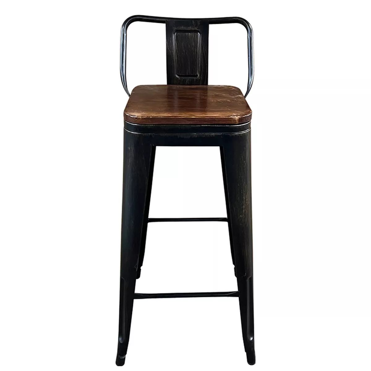 Σκαμπό Bar ArteLibre Βιομηχανικού Τύπου Vintage MOLERO II Μαύρο Αντικέ/Καφέ Μέταλλο/Ξύλο 44x44x94cm
