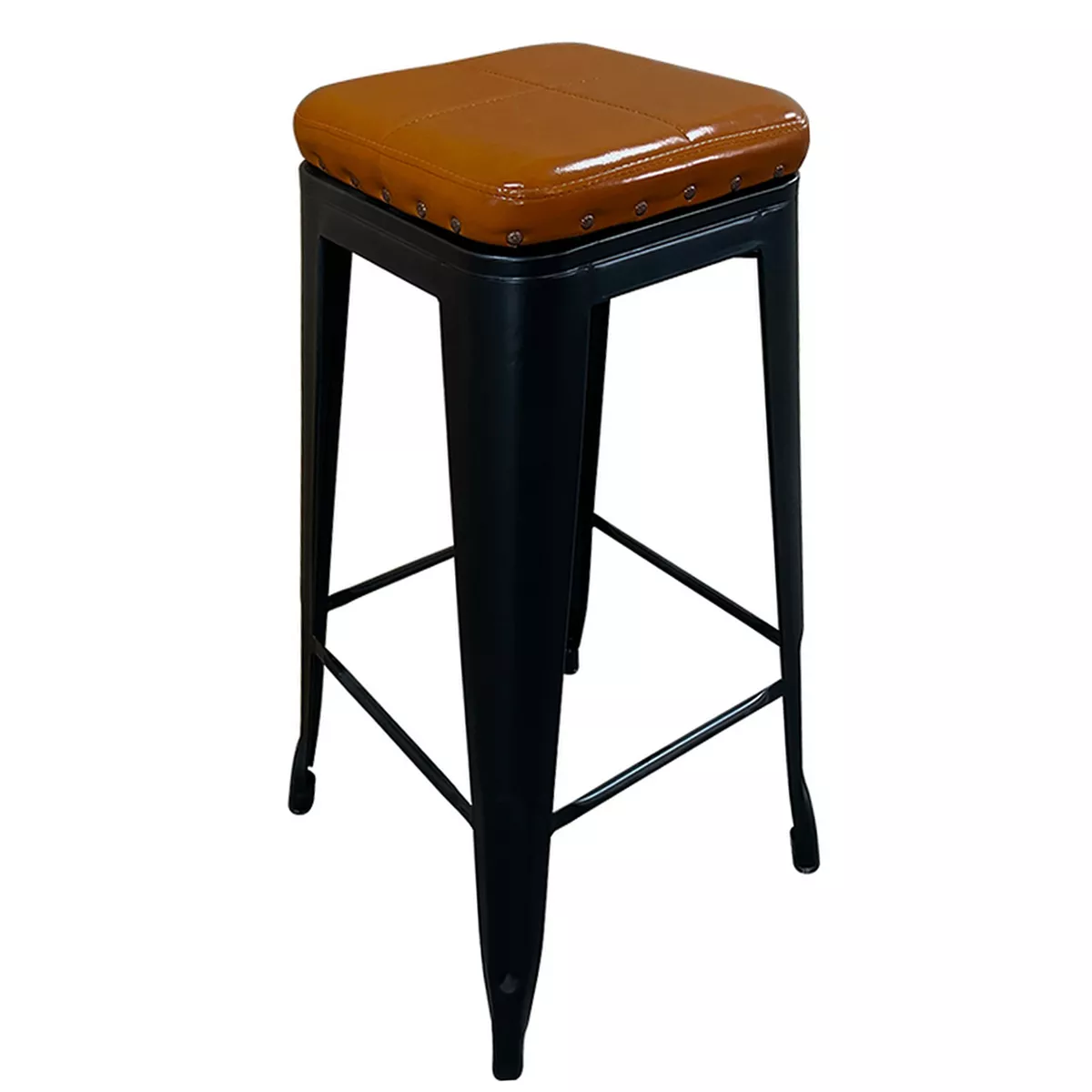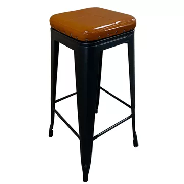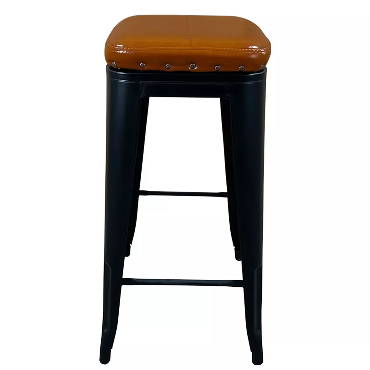 Σκαμπό Bar ArteLibre Βιομηχανικού Τύπου Vintage SILANO III Μαύρο Ματ/Καφέ Μέταλλο/PU 43x43x78cm