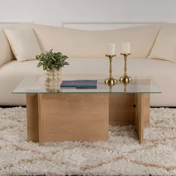 Τραπεζάκι σαλονιού Vetrino Megapap γυάλινο χρώμα honey oak 105x65x40εκ.