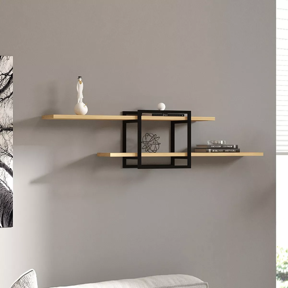 Ραφιέρα τοίχου Mone Megapap χρώμα sapphire oak - μαύρο 120x18x30εκ.