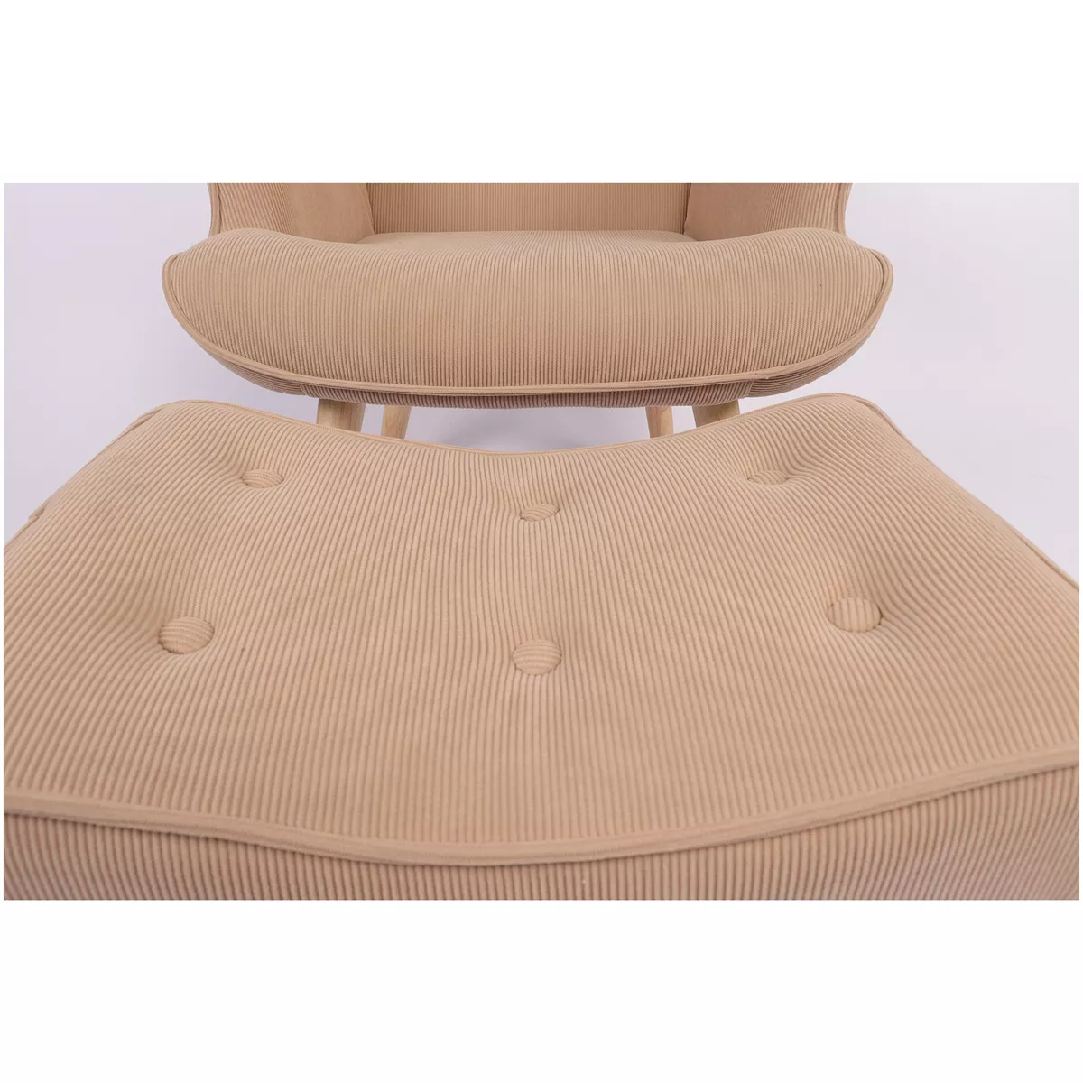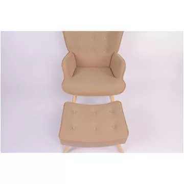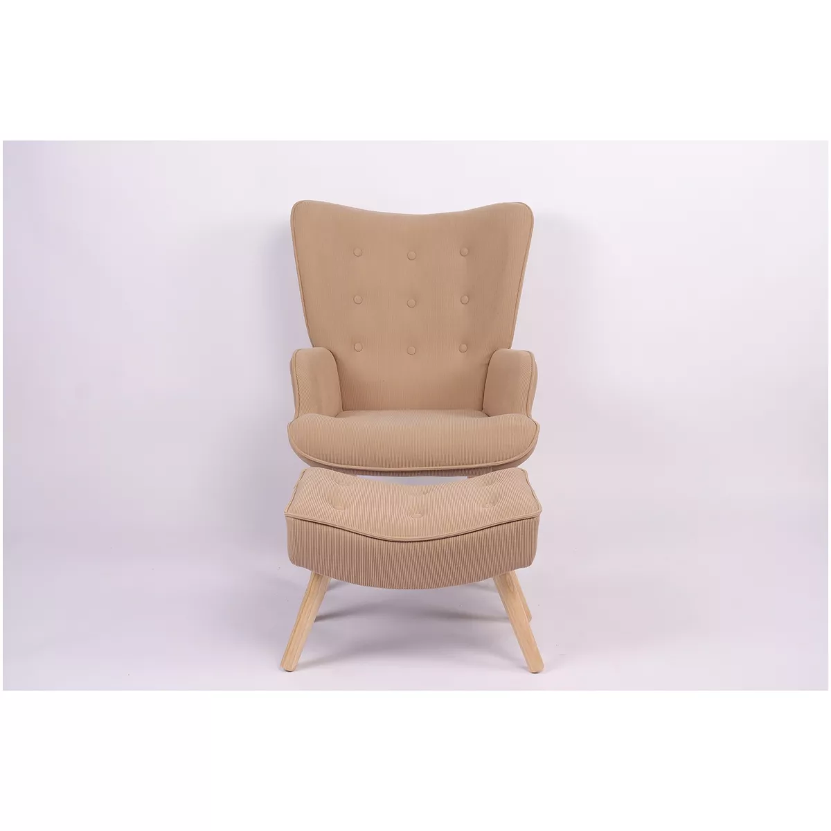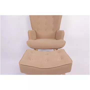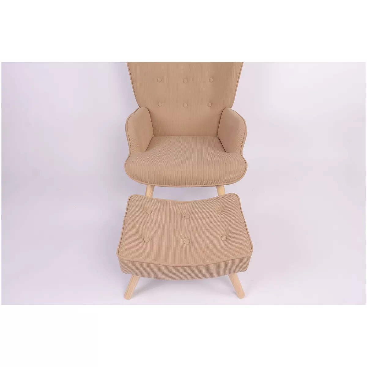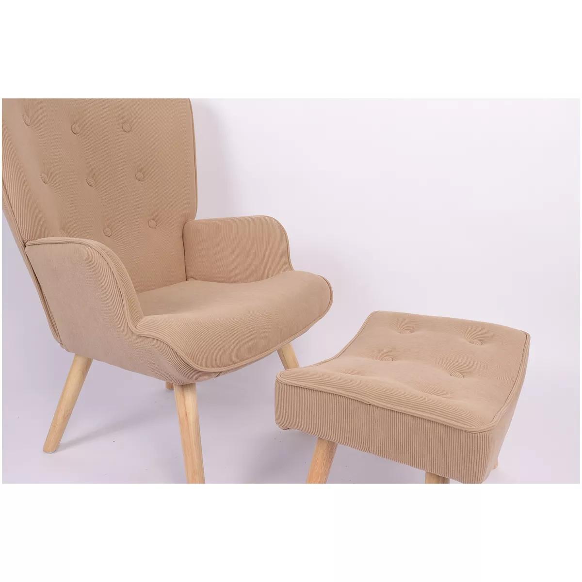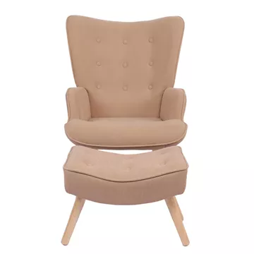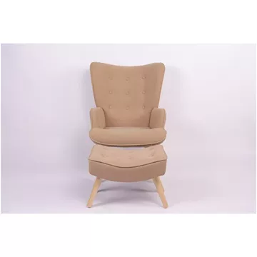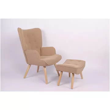 Πολυθρόνα Μπερζέρα Με Υποπόδιο ArteLibre ANIDORI Ανοιχτό Καφέ Ύφασμα/Ξύλο 73x69x96cm