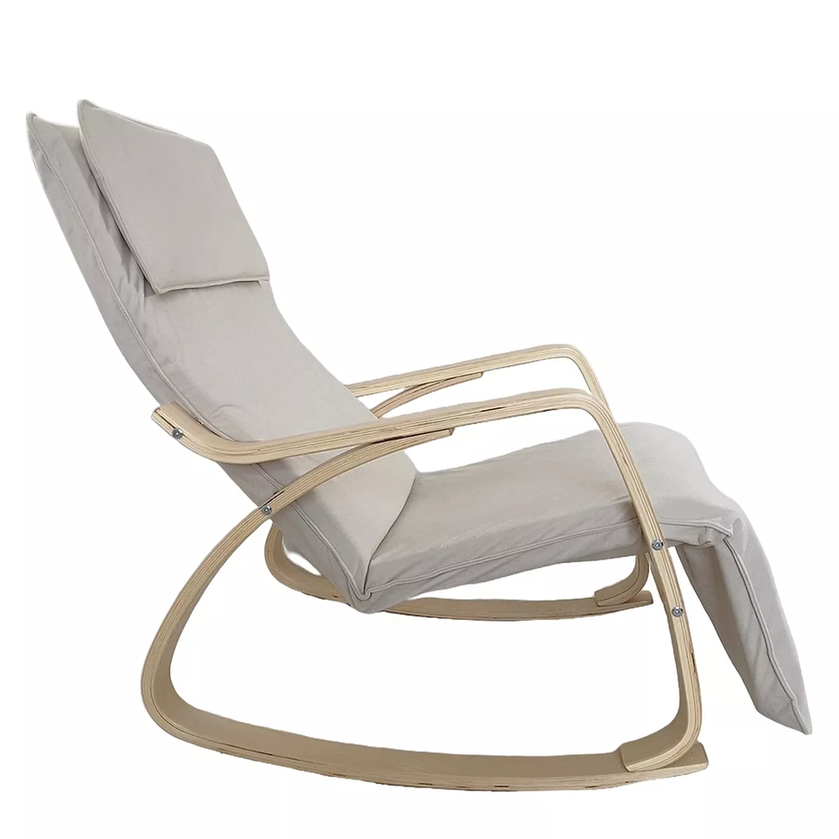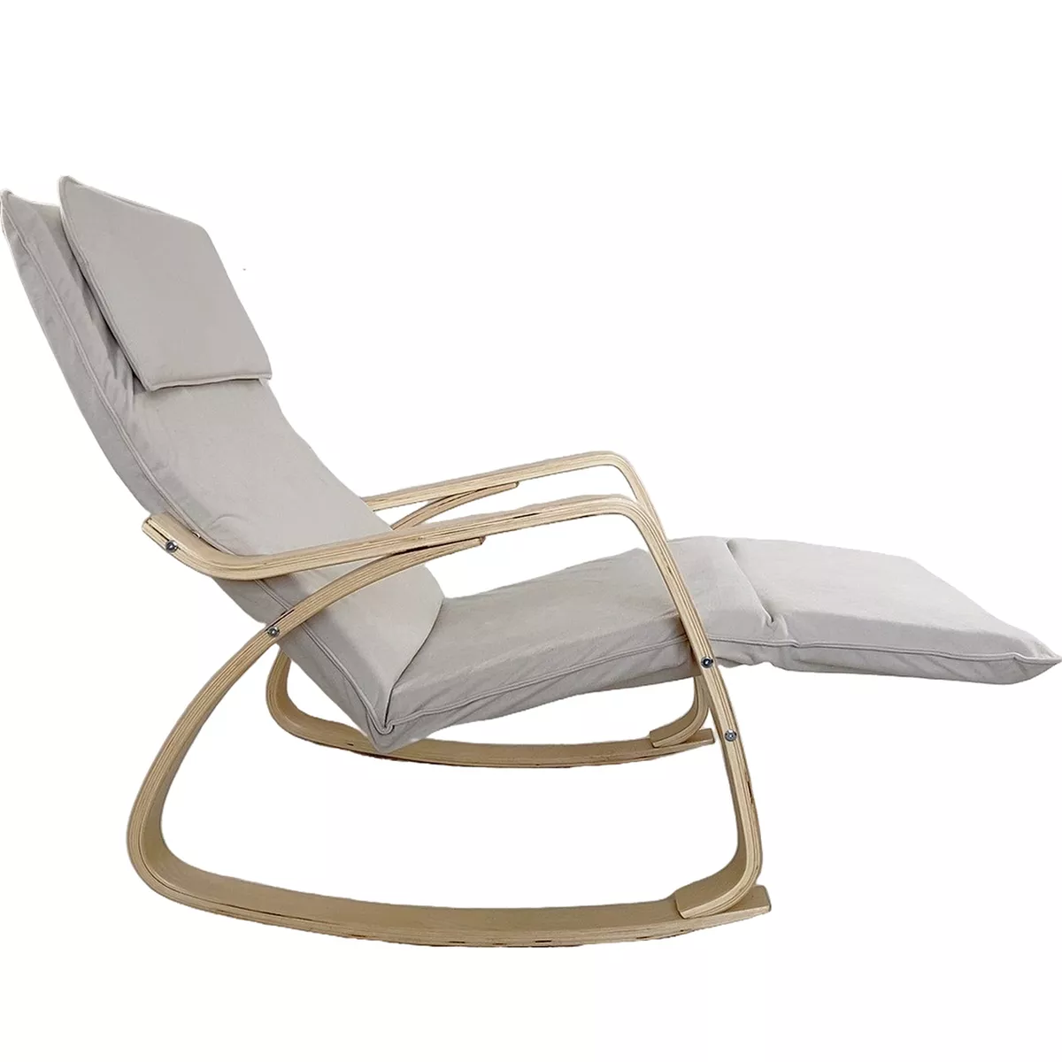 Πολυθρόνα Κουνιστή ArteLibre LUNDRA Μπεζ/Φυσικό Ύφασμα/Ξύλο 67x127x91cm