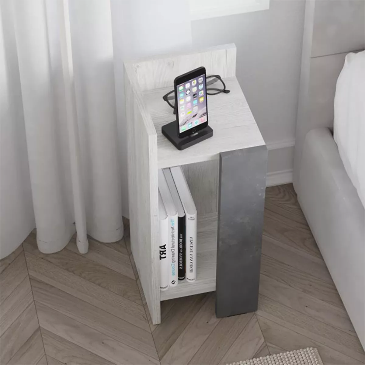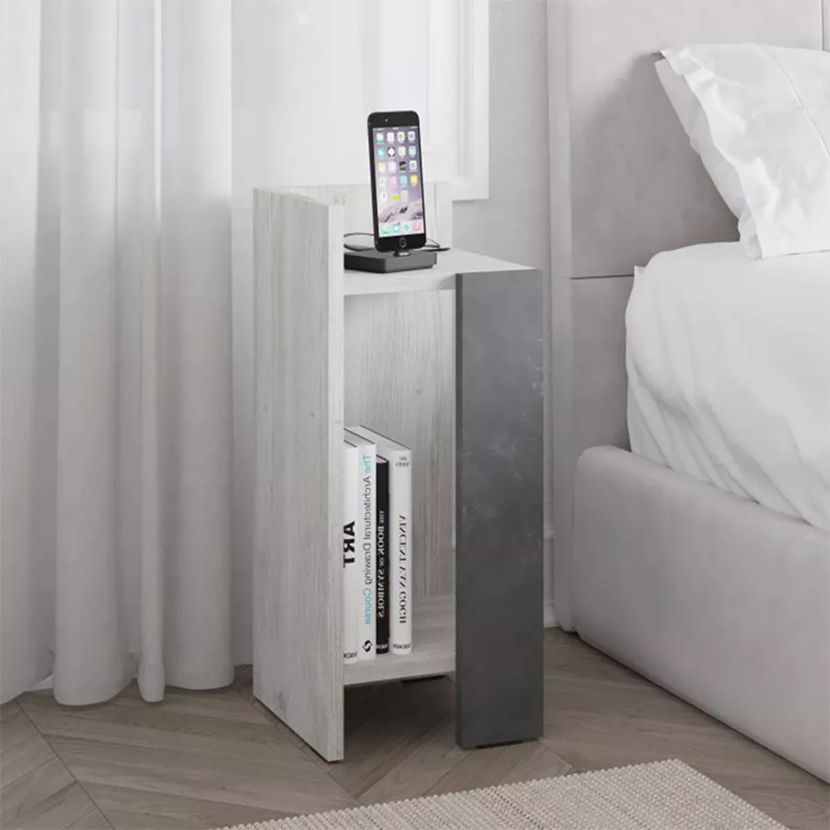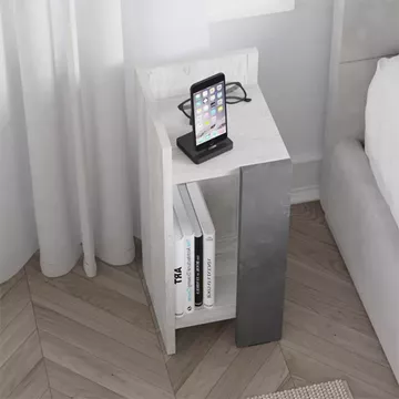 Κομοδίνο Elos Megapap αριστερό χρώμα λευκό αντικέ - γκρι ρετρό 25x27x60εκ.