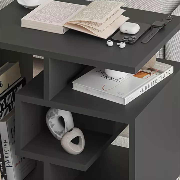 Βοηθητικό τραπεζάκι Labirent Megapap από μελαμίνη χρώμα ανθρακί 54x40x45εκ.