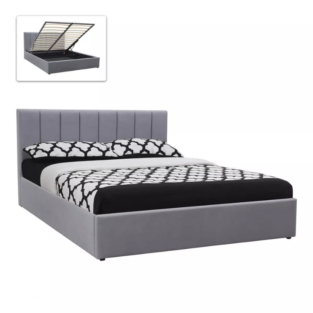 Κρεβάτι Renata Megapap υφασμάτινο με αποθηκευτικό χώρο χρώμα γκρι 160x200εκ.