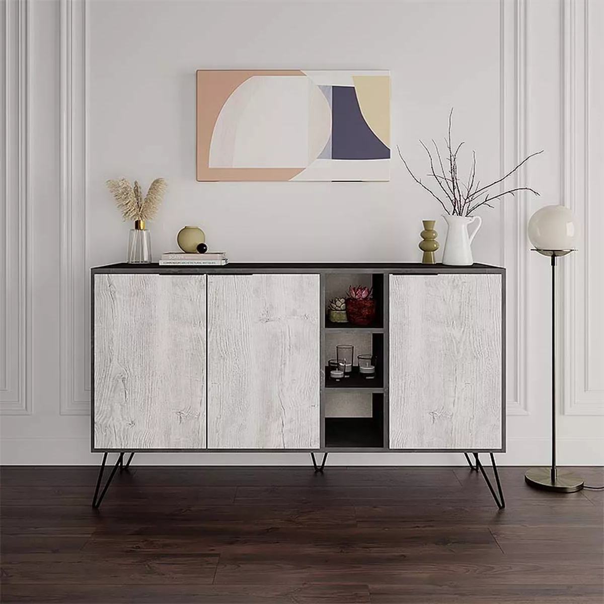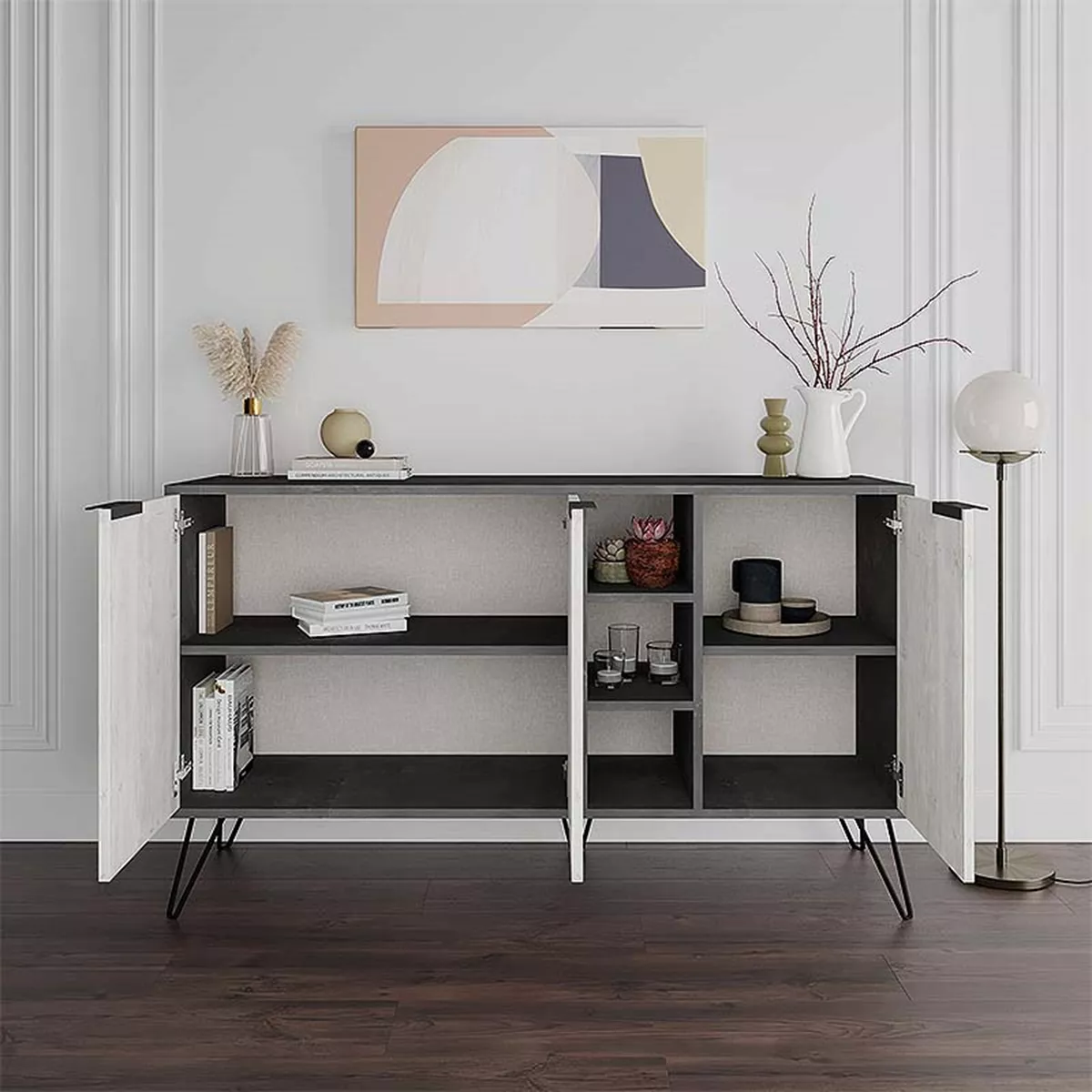 Μπουφές μελαμίνης Clara Megapap χρώμα γκρι ρετρό - λευκό αντικέ 142x35,6x83εκ.