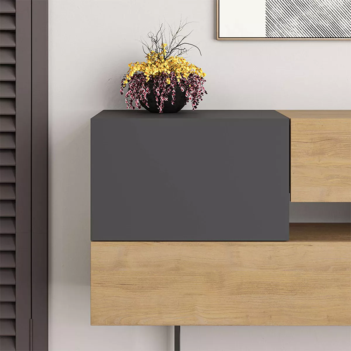 Μπουφές Eros Megapap από μελαμίνη φυσικό οξιάς - ανθρακί 145x40x82εκ.