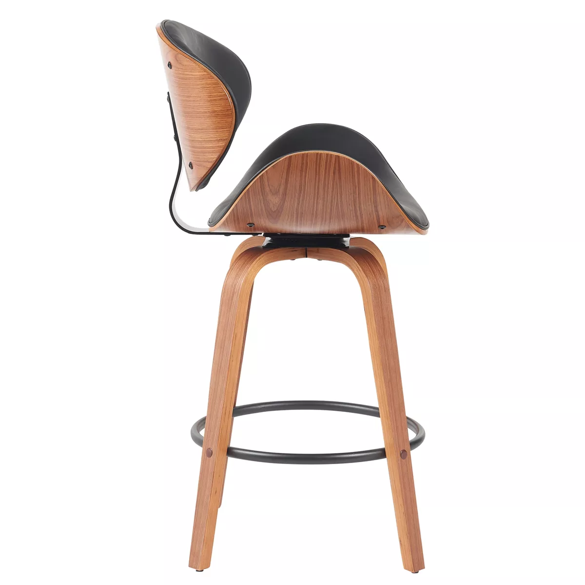 Σκαμπό Bar ArteLibre LYRIAN Μαύρο/Καφέ Ξύλο/PU 52x55x107cm