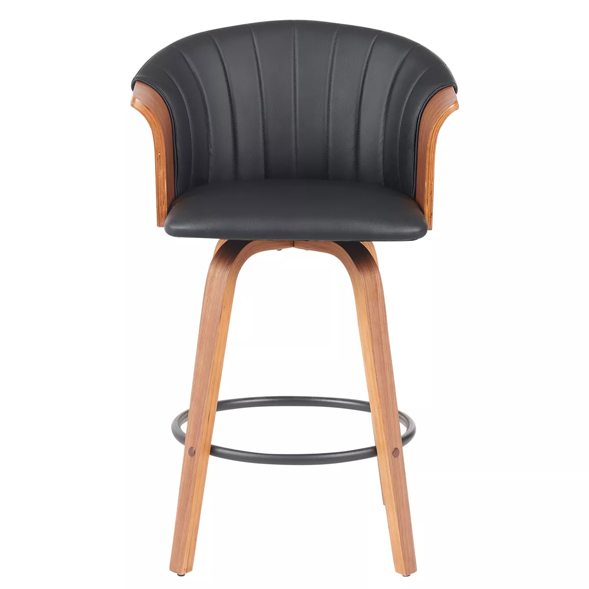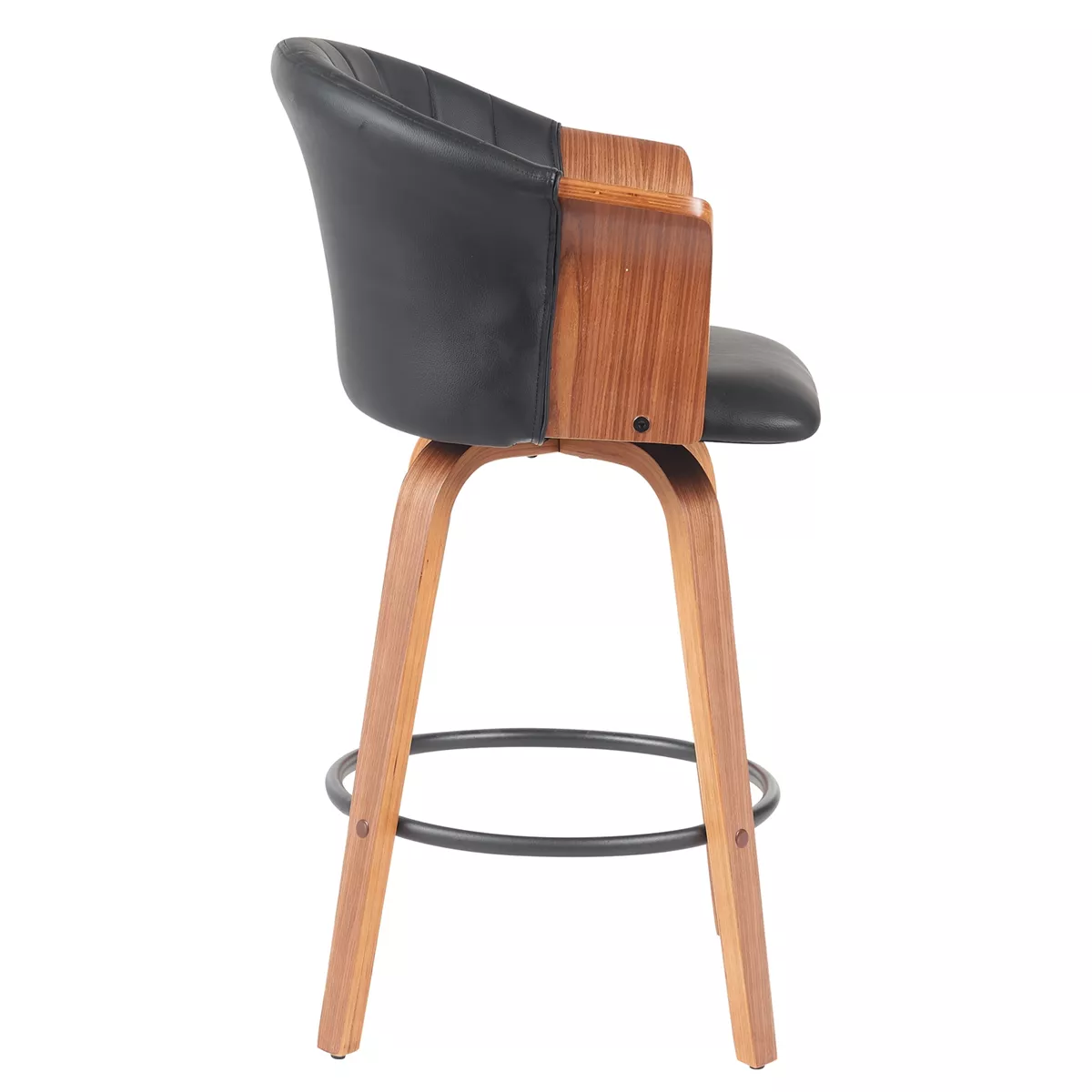 Σκαμπό Bar ArteLibre CASSIAN Μαύρο/Καφέ Ξύλο/PU 50x50x103cm