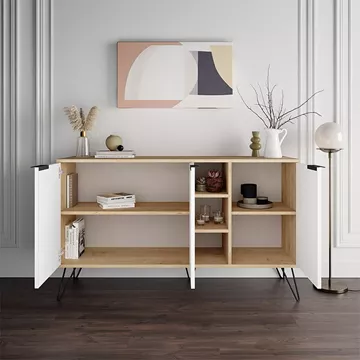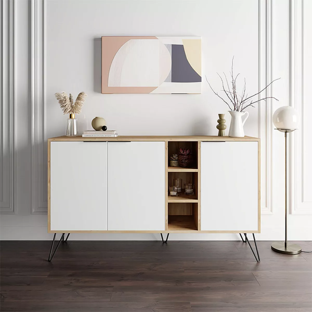 Μπουφές μελαμίνης Clara Megapap χρώμα φυσικό οξιάς - λευκό 142x35,6x83εκ.