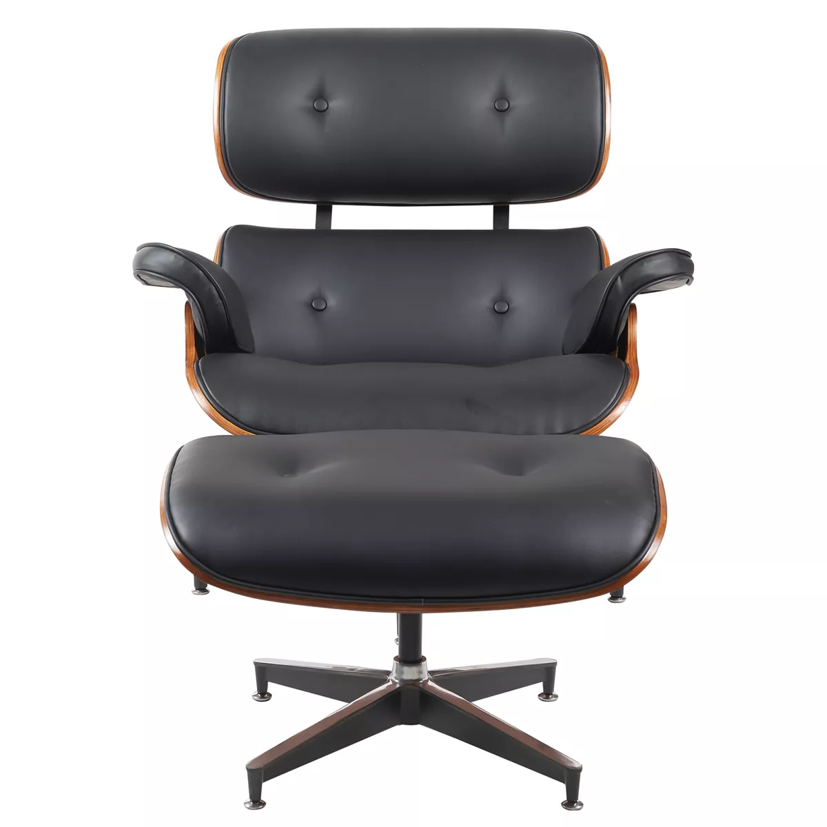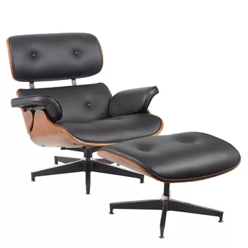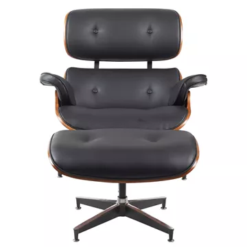 Πολυθρόνα Relax ArteLibre MIREN Με Υποπόδιο Μαύρο/Καφέ Ξύλο/PU 82x92x78cm