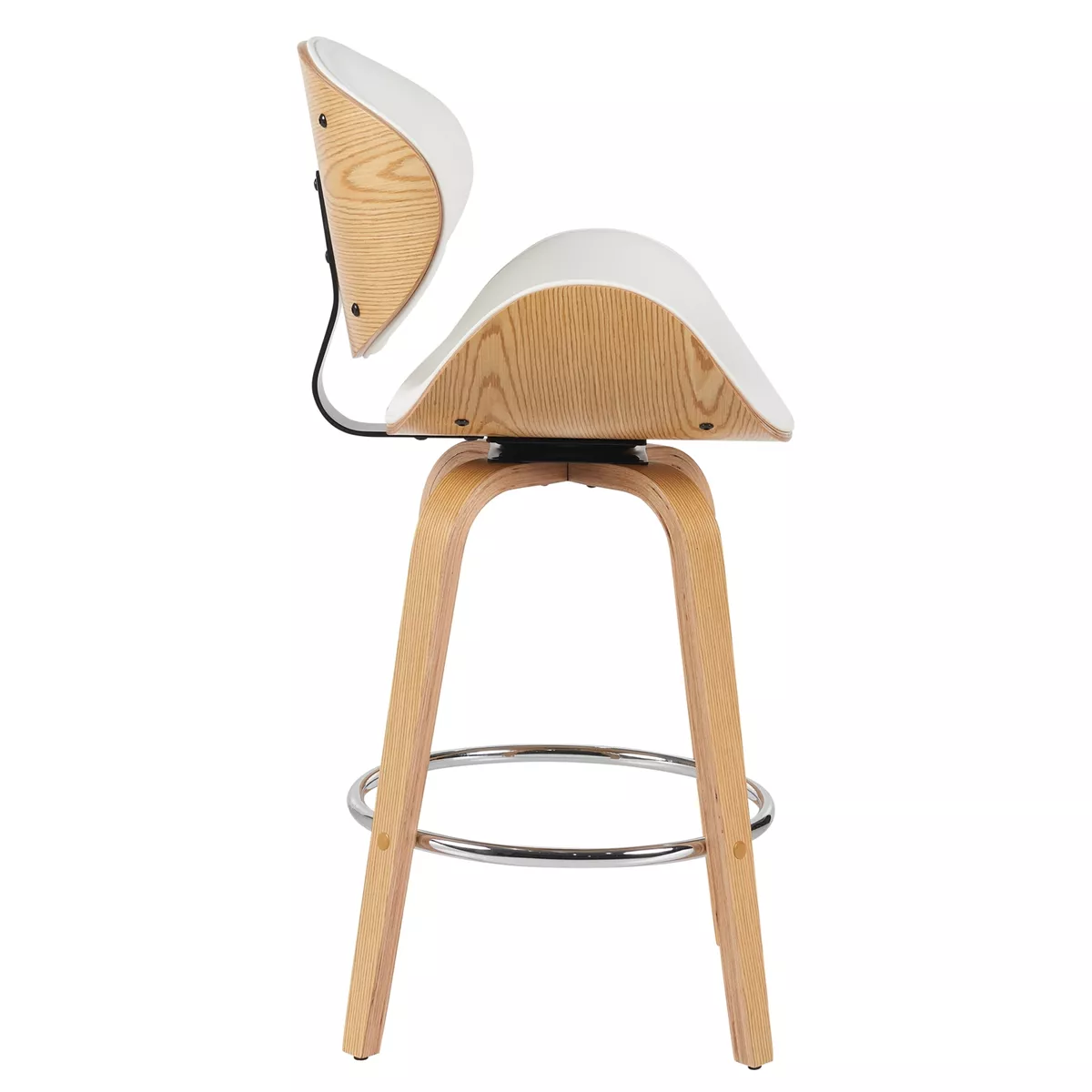 Σκαμπό Bar ArteLibre LYRIAN Λευκό/Φυσικό Ξύλο/PU 52x55x107cm