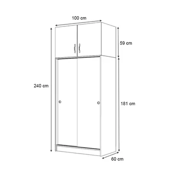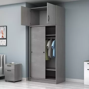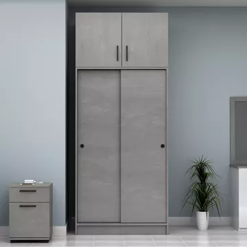 Ντουλάπα ρούχων Regio Megapap δίφυλλη συρόμενη με πατάρι χρώμα γκρι σκυροδέματος 100x60x240εκ.