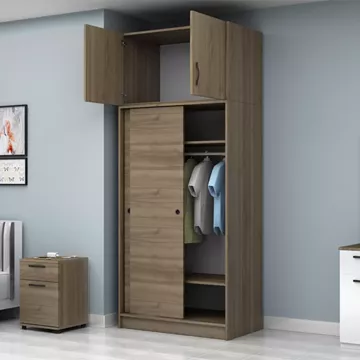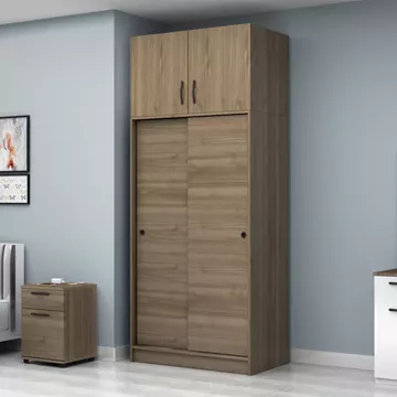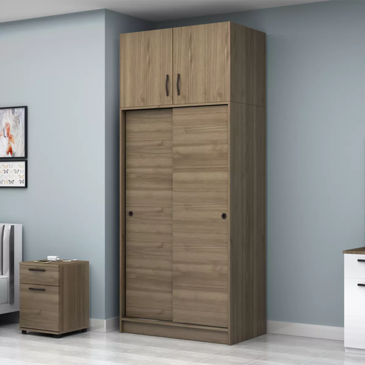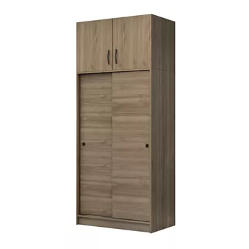 Ντουλάπα ρούχων Regio Megapap δίφυλλη συρόμενη με πατάρι χρώμα καρυδί 100x60x240εκ.