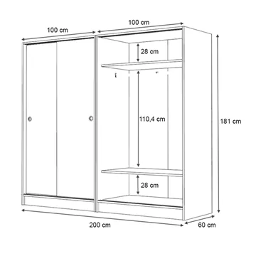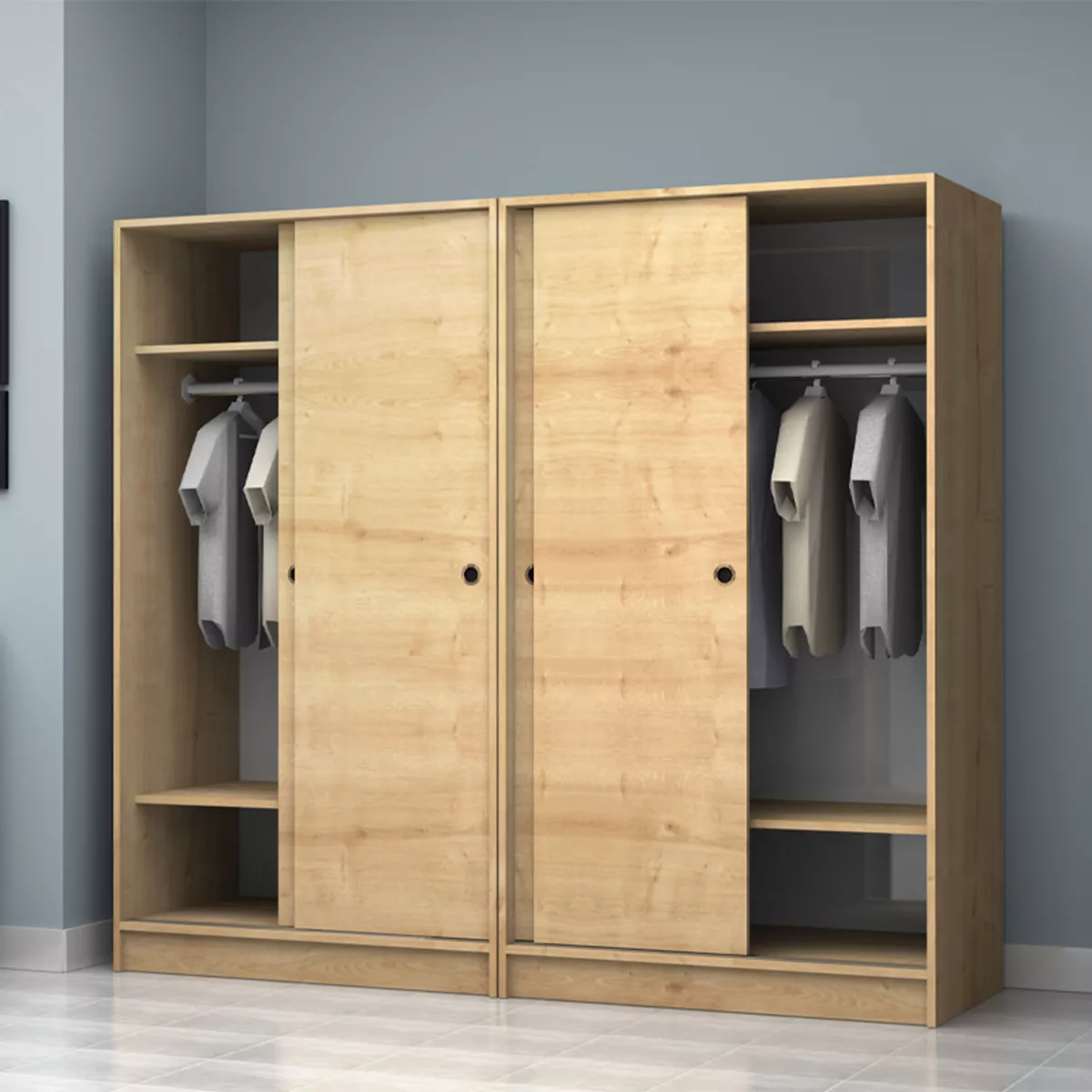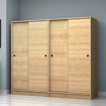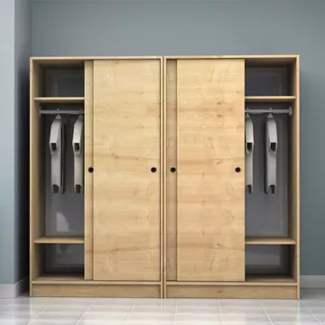 Ντουλάπα ρούχων Regio Megapap τετράφυλλη συρόμενη χρώμα φυσικό οξιάς 200x60x181εκ.