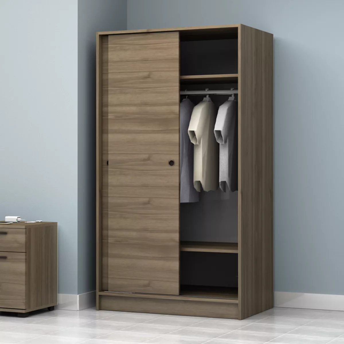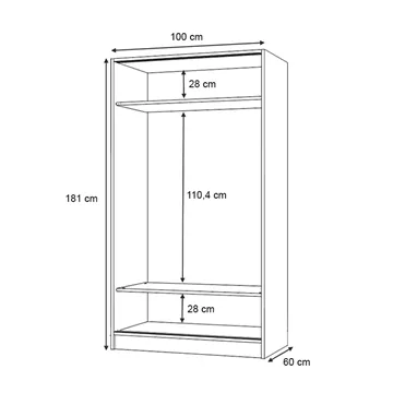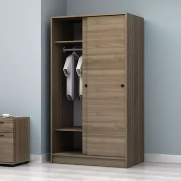 Ντουλάπα ρούχων Regio Megapap δίφυλλη συρόμενη χρώμα καρυδί 100x60x181εκ.