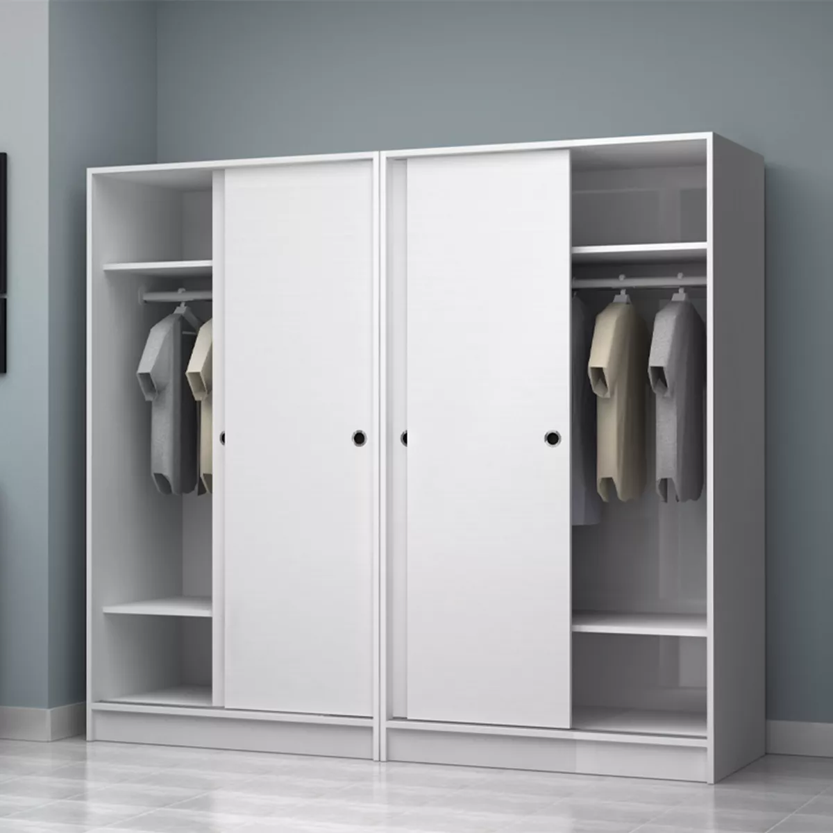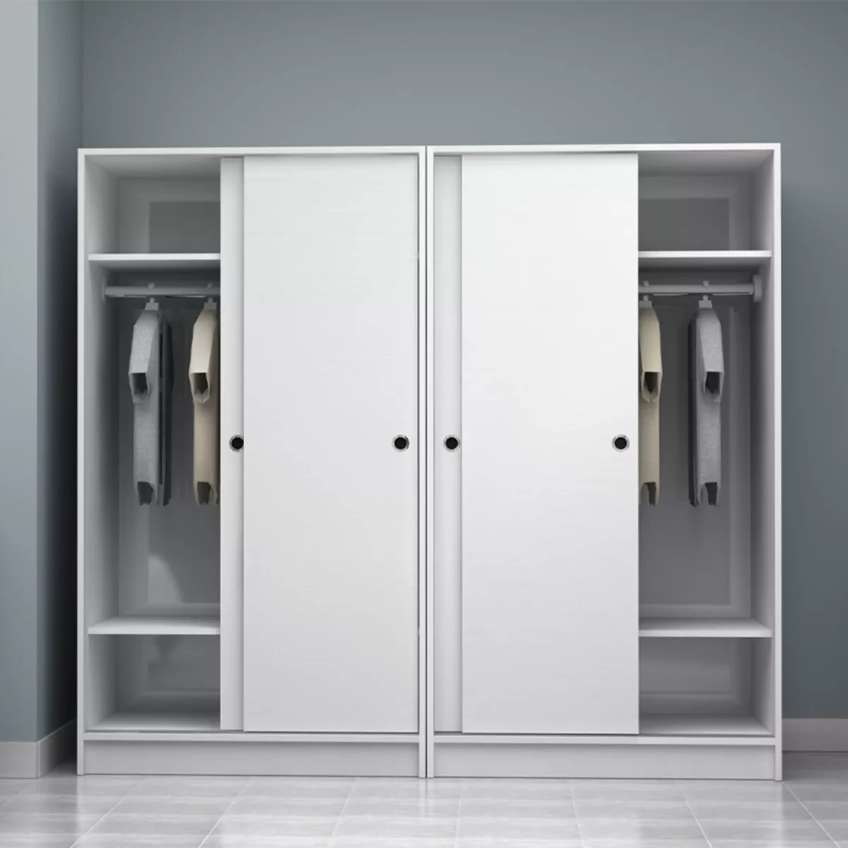 Ντουλάπα ρούχων Regio Megapap τετράφυλλη συρόμενη χρώμα λευκό 200x60x181εκ.