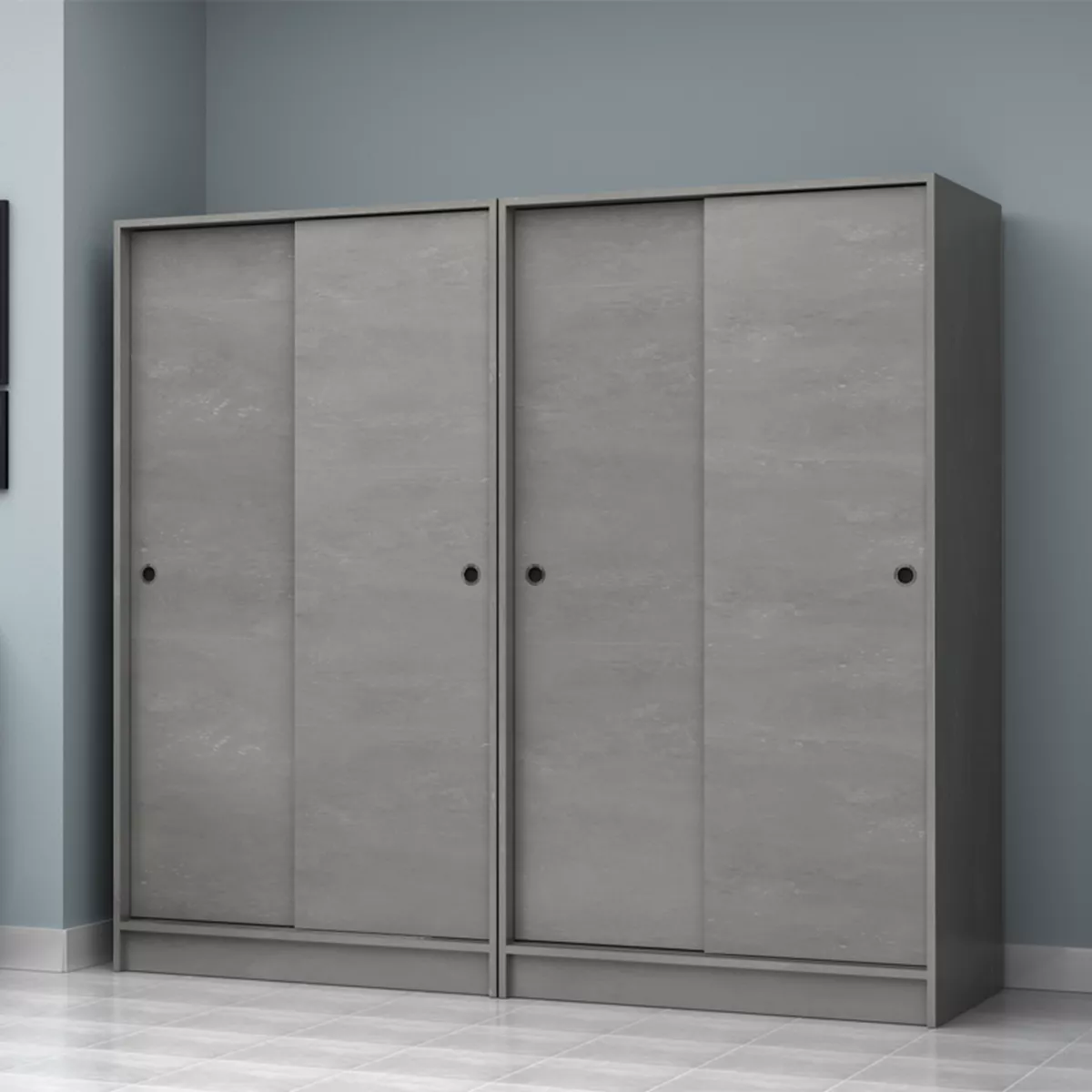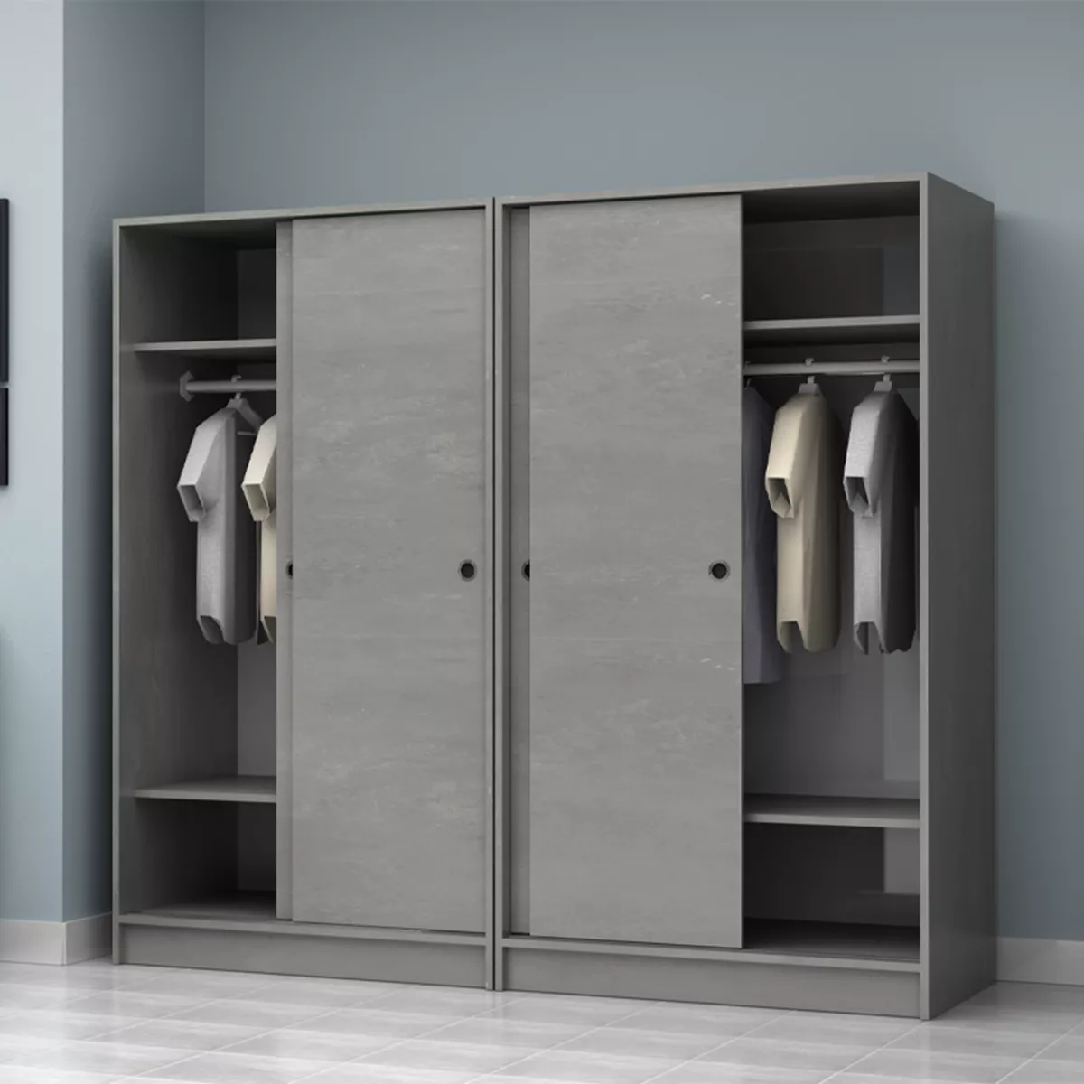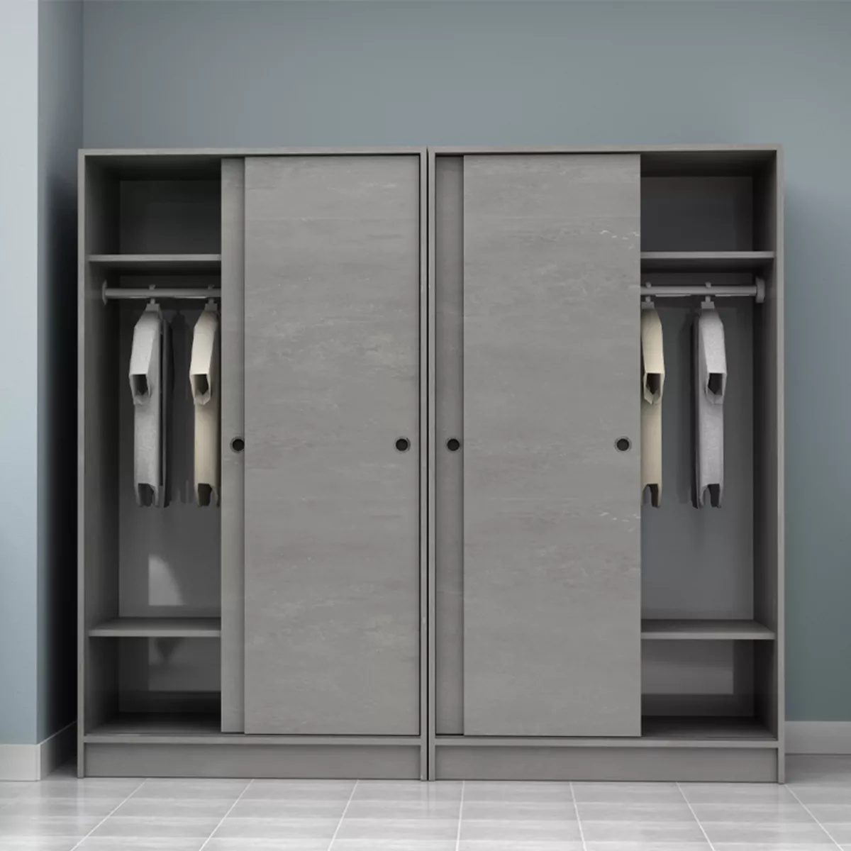 Ντουλάπα ρούχων Regio Megapap τετράφυλλη συρόμενη χρώμα γκρι σκυροδέματος 200x60x181εκ.