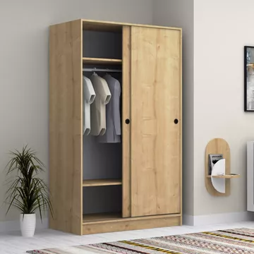 Ντουλάπα ρούχων Regio Megapap δίφυλλη συρόμενη χρώμα φυσικό οξιάς 120x60x200εκ.