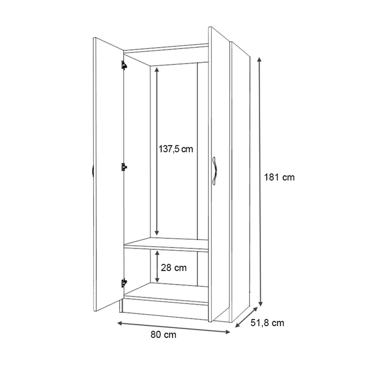 Ντουλάπα ρούχων Vivian Megapap δίφυλλη χρώμα καρυδί 80x51,8x181εκ.