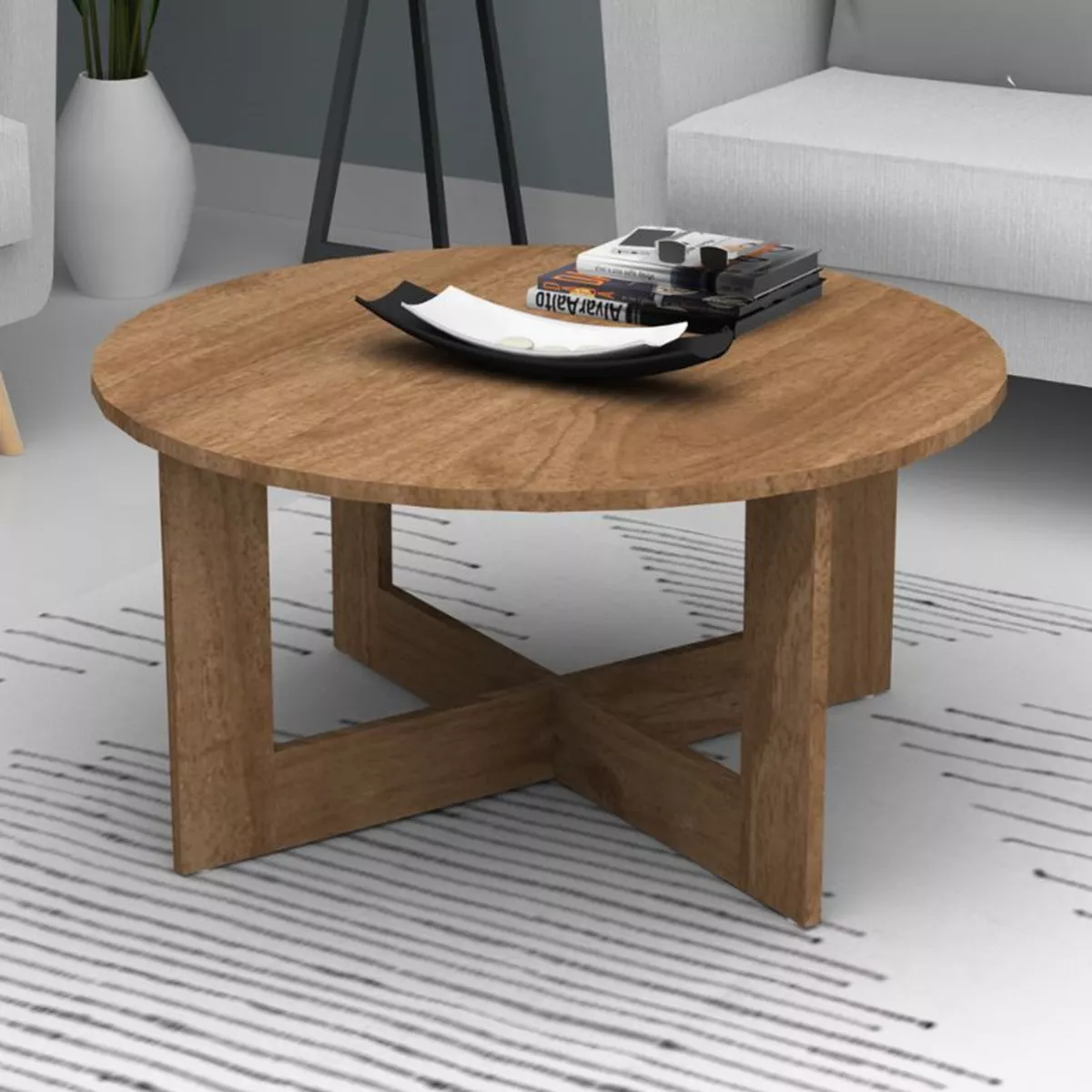Τραπεζάκι σαλονιού Kati Megapap χρώμα καρυδί Ø80x42εκ.
