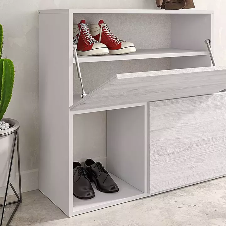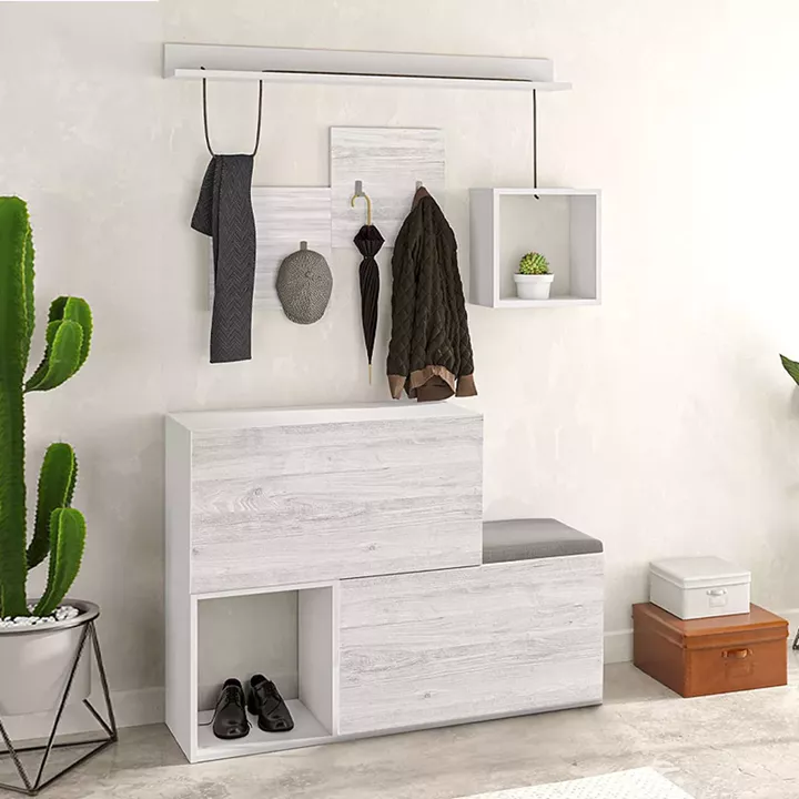 Έπιπλο εισόδου-παπουτσοθήκη Holdon Megapap μελαμίνης χρώμα λευκό αντικέ 120x36,5x87,5εκ.