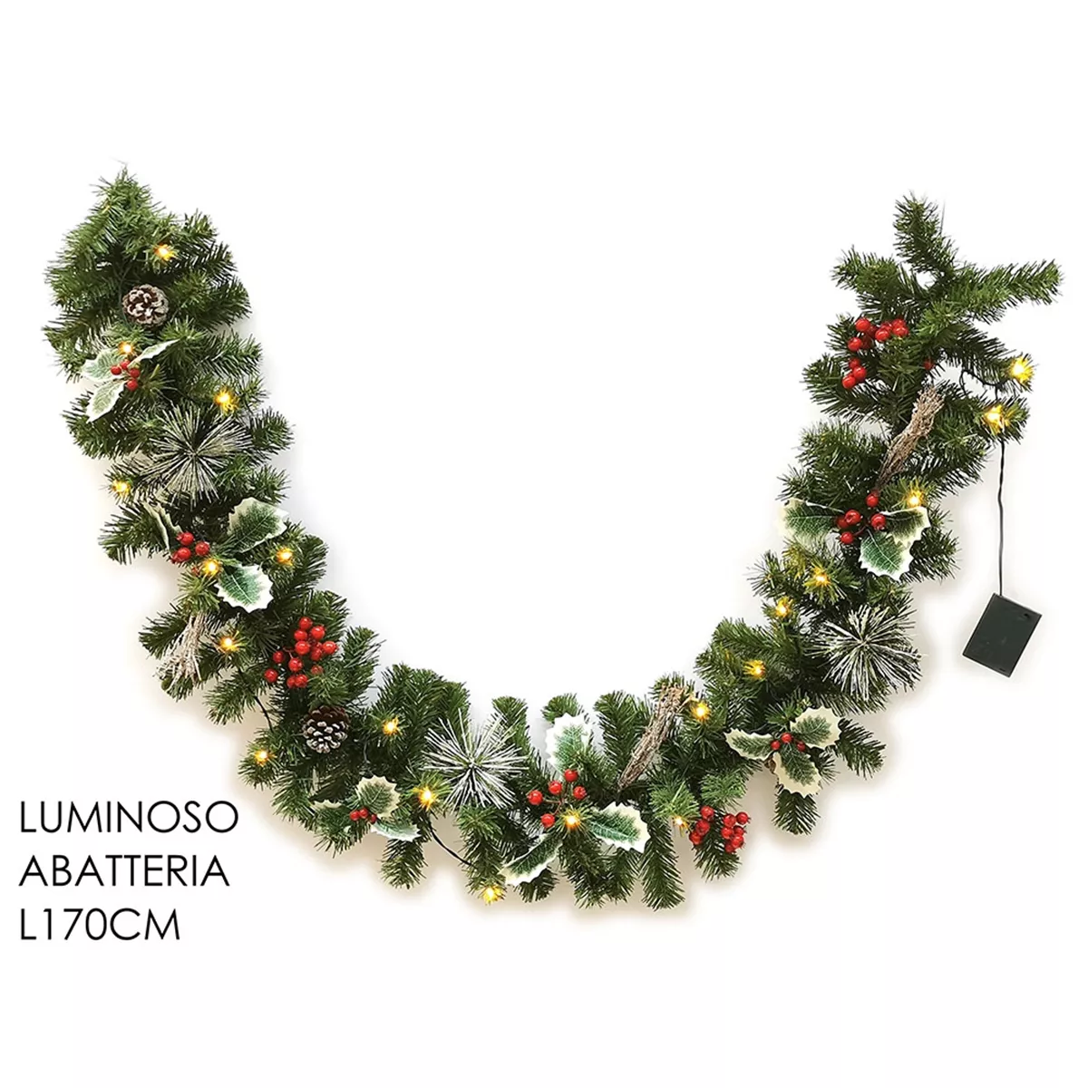 Γιρλάντα Με Κουκουνάρια Γκι Και Berries Φωτιζόμενη Μπαταρίας Πράσινο 170cm