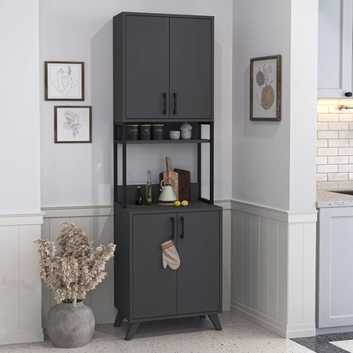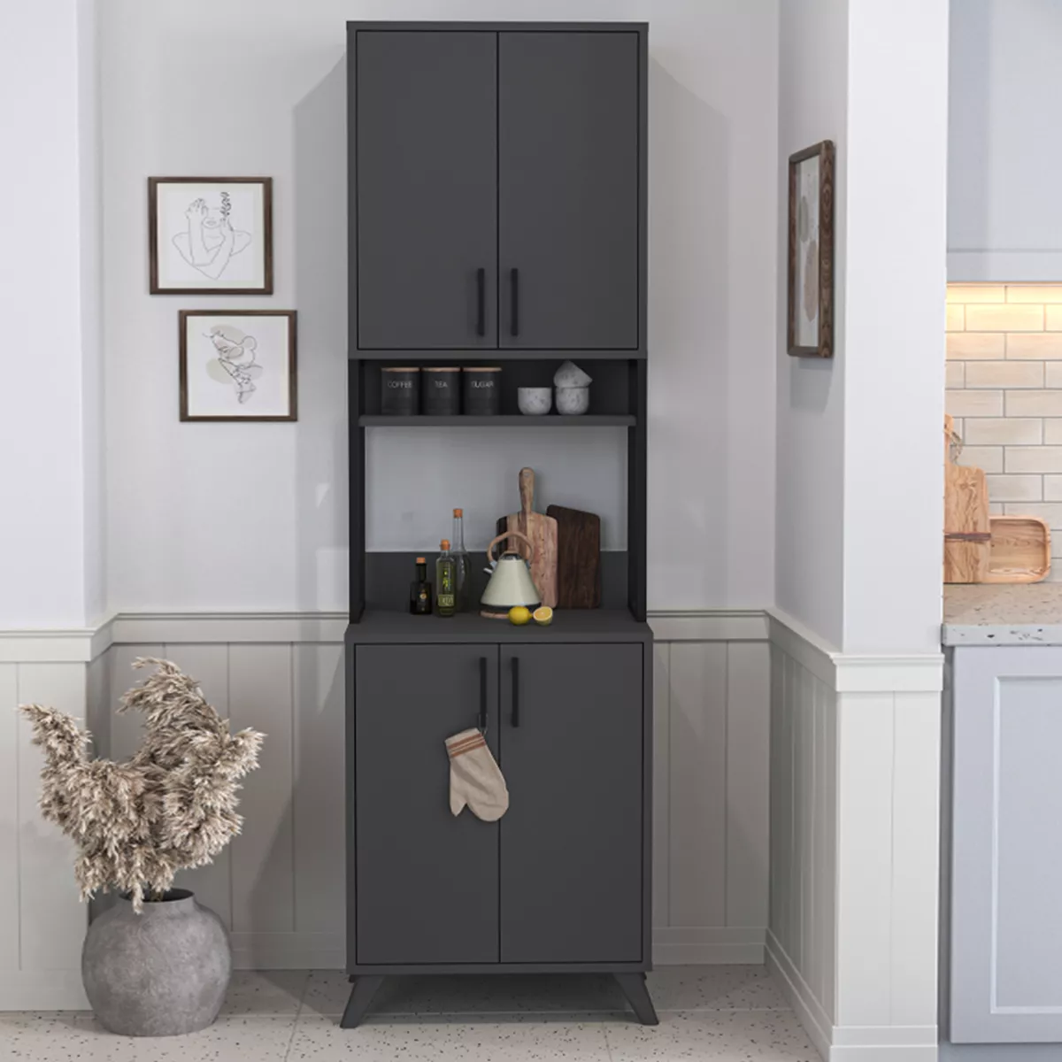 Έπιπλο κουζίνας Sedef Megapap χρώμα ανθρακί 61x40x202,1εκ.