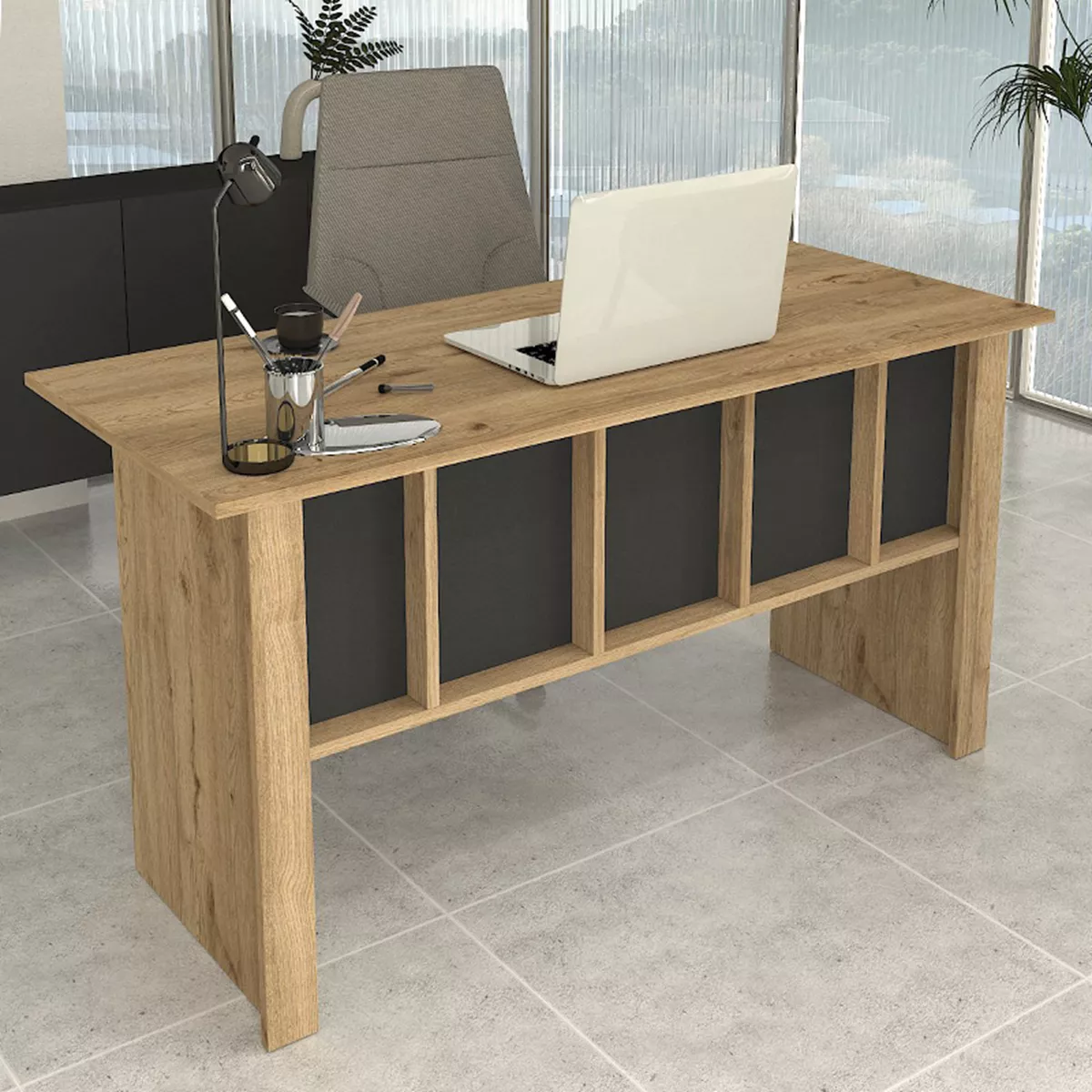Γραφείο εργασίας Nika Megapap χρώμα sepet oak - ανθρακί 140x60x75εκ.