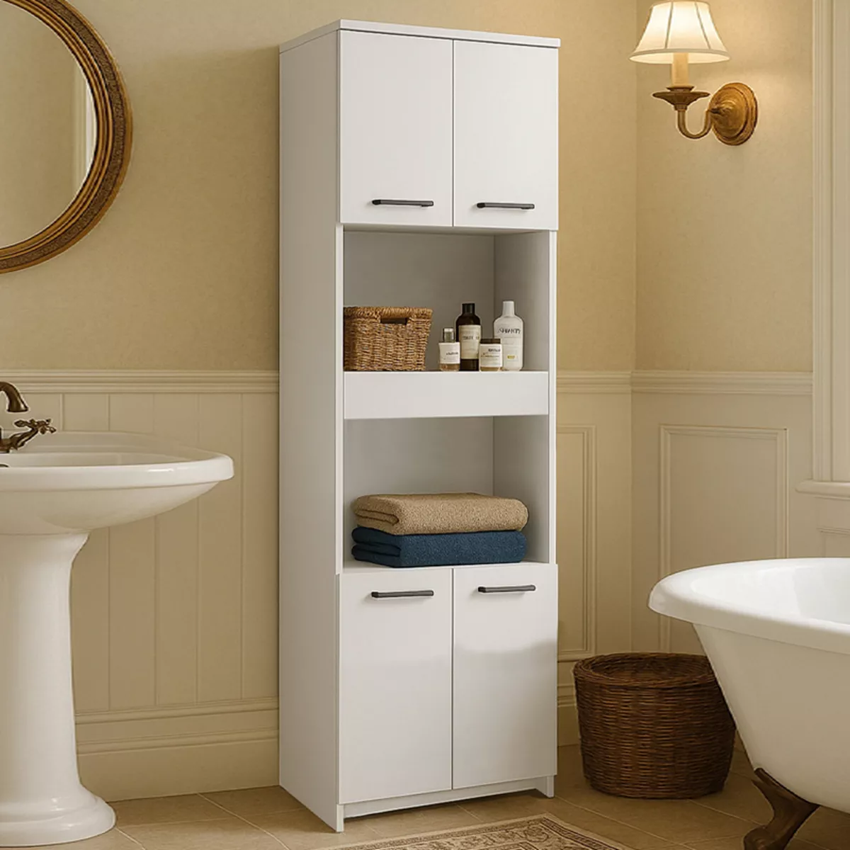 Ντουλάπι κουζίνας - μπάνιου Alvento Megapap χρώμα λευκό 60x42x180εκ.