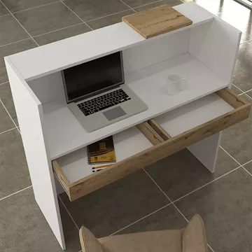 Γραφείο υποδοχής - reception Navita Megapap με LED χρώμα λευκό - sepet oak 113,6x42x111,8εκ.