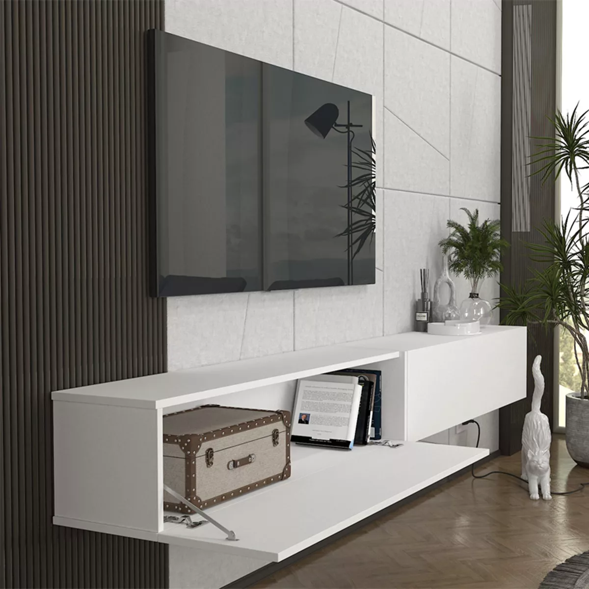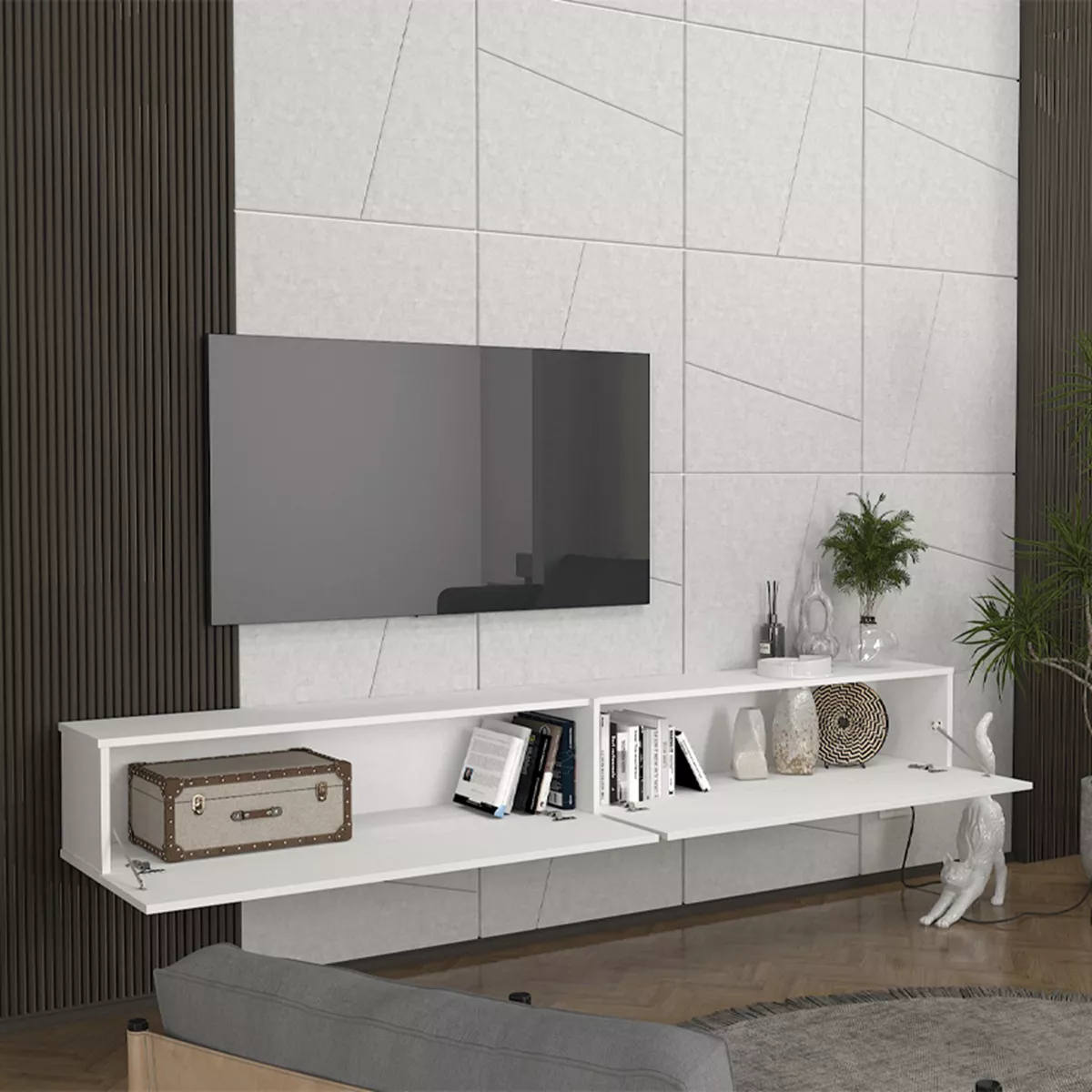 Έπιπλο τηλεόρασης επιτοίχιο Espanse Megapap χρώμα λευκό 241,8x31,7x30εκ.