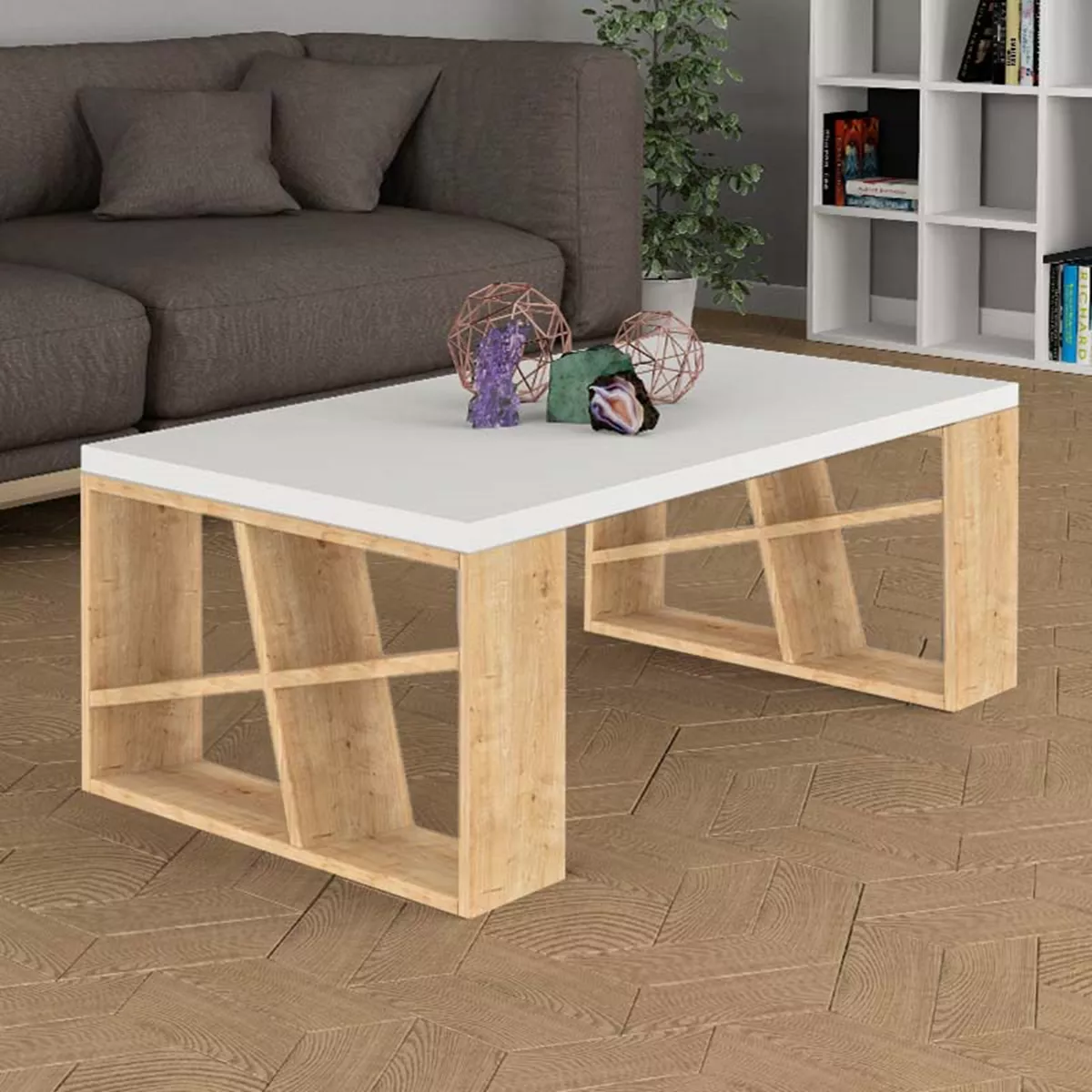 Τραπεζάκι σαλονιού Honey Megapap μελαμίνης χρώμα φυσικό οξιάς - λευκό 105x60x40εκ.