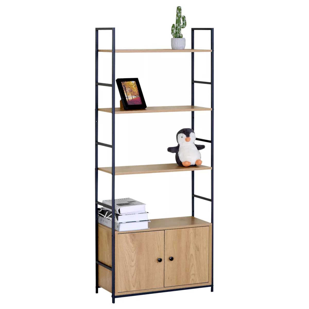 Ραφιέρα ArteLibre ELRIDGE Με Ντουλάπι Δρυς/Μαύρο Μοριοσανίδα/Μέταλλο 58.6x23.5x144cm