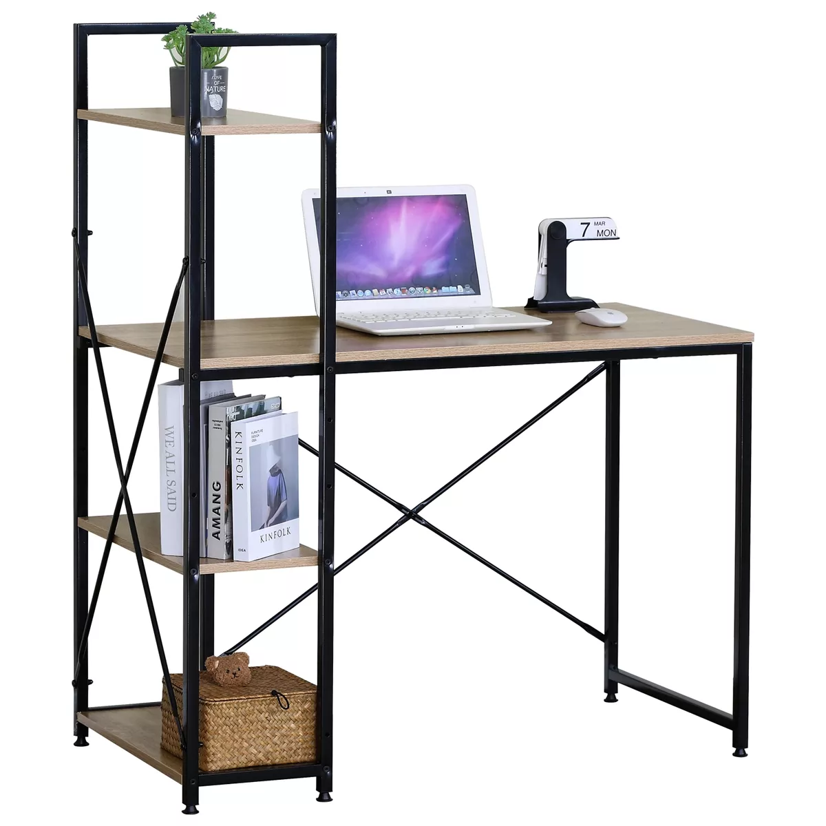 Γραφείο ArteLibre JORVIK Με Ράφια Δρυς/Μαύρο Μοριοσανίδα/Μέταλλο 100x52x120cm