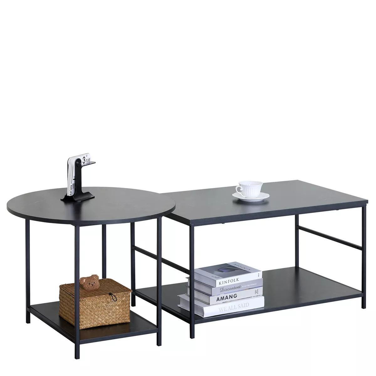 Τραπεζάκι Σαλονιού ArteLibre ROWDEN Μαύρο Μάρμαρο Μοριοσανίδα/Μέταλλο 60x60x50/80x47x45cm Σετ 2Τμχ