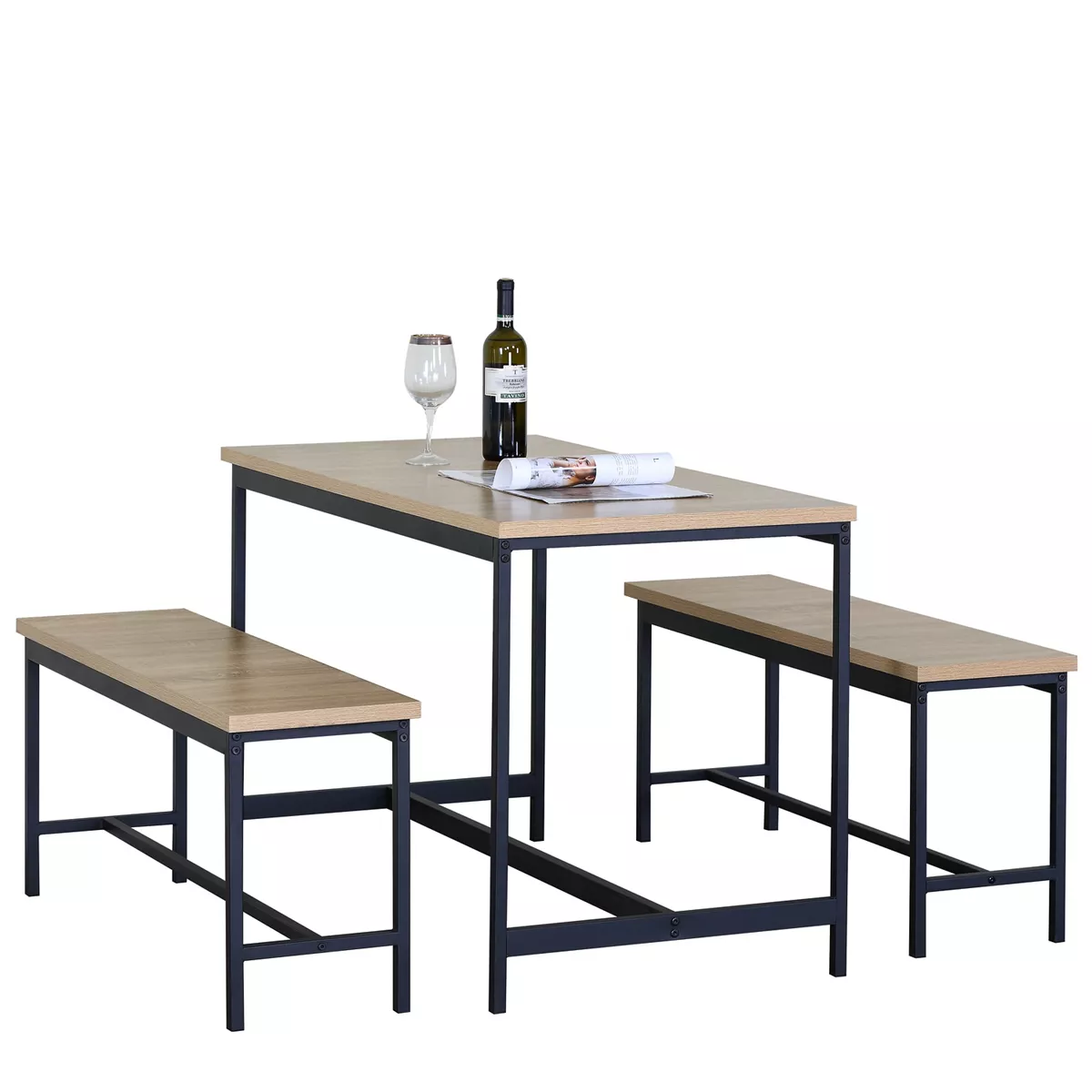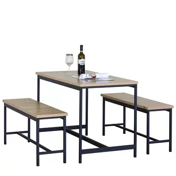 Σετ Τραπεζαρία (2+1) ArteLibre CARRISTON Δρυς/Μαύρο Μοριοσανίδα/Μέταλλο 110x60x75cm